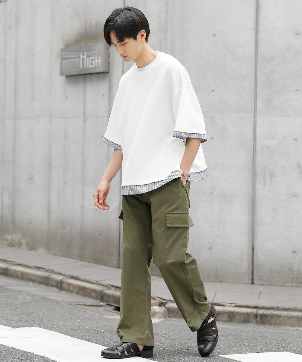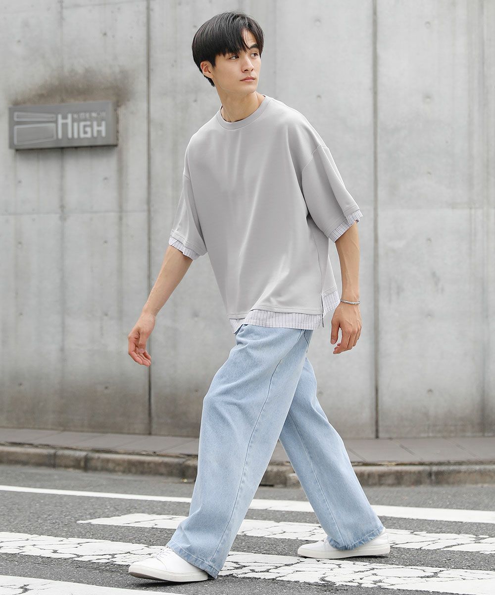 半袖フェイクレイヤードオーバーサイズポンチTシャツ