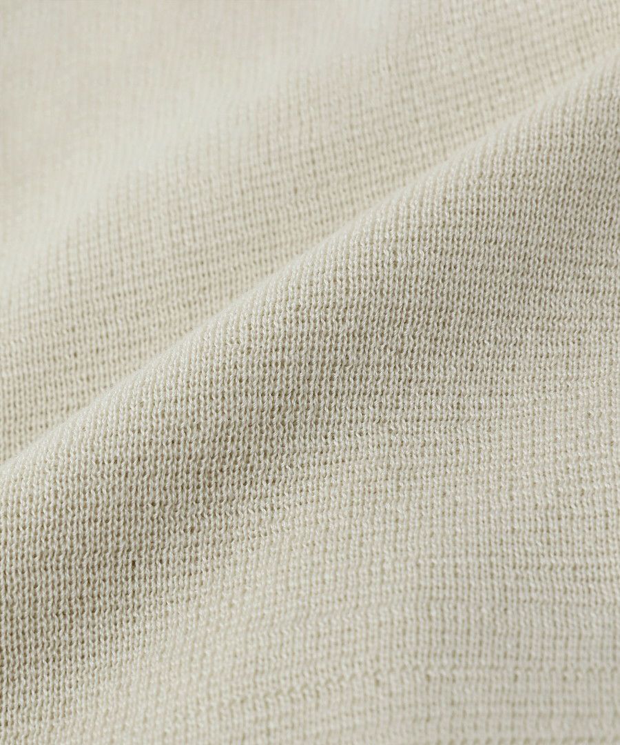 また、毛羽が少なくニット製品にありがちなチクチク感などもないため、首周りのストレスもありません。程よい厚みのもちっとした生地は何度でも着たくなる心地よい着用感です。