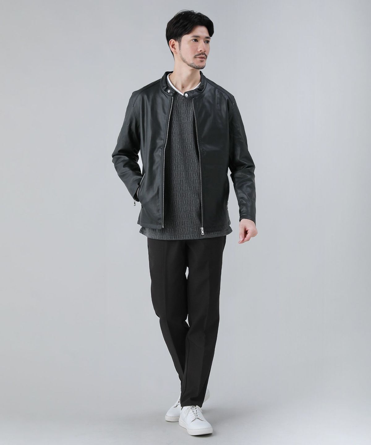 襟元や袖口から覗く白い生地によってまるで重ね着をしているように見え、1枚でもバランスの良い着こなしに仕上がるアイテムです。