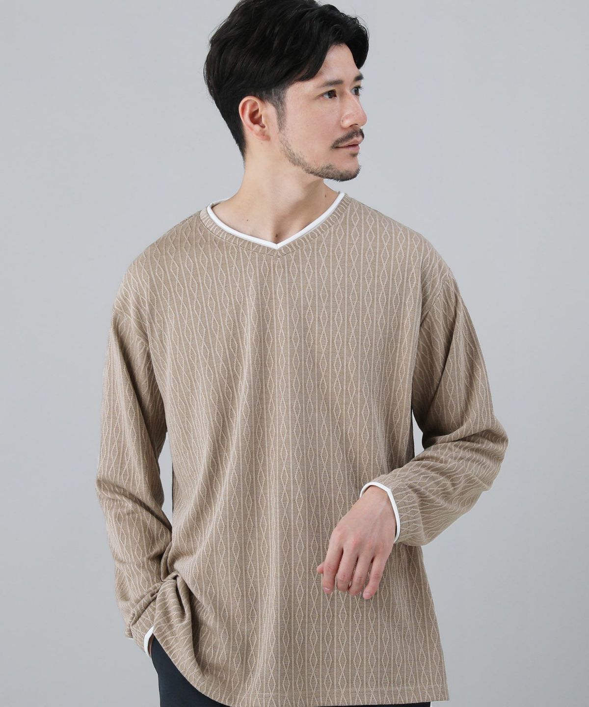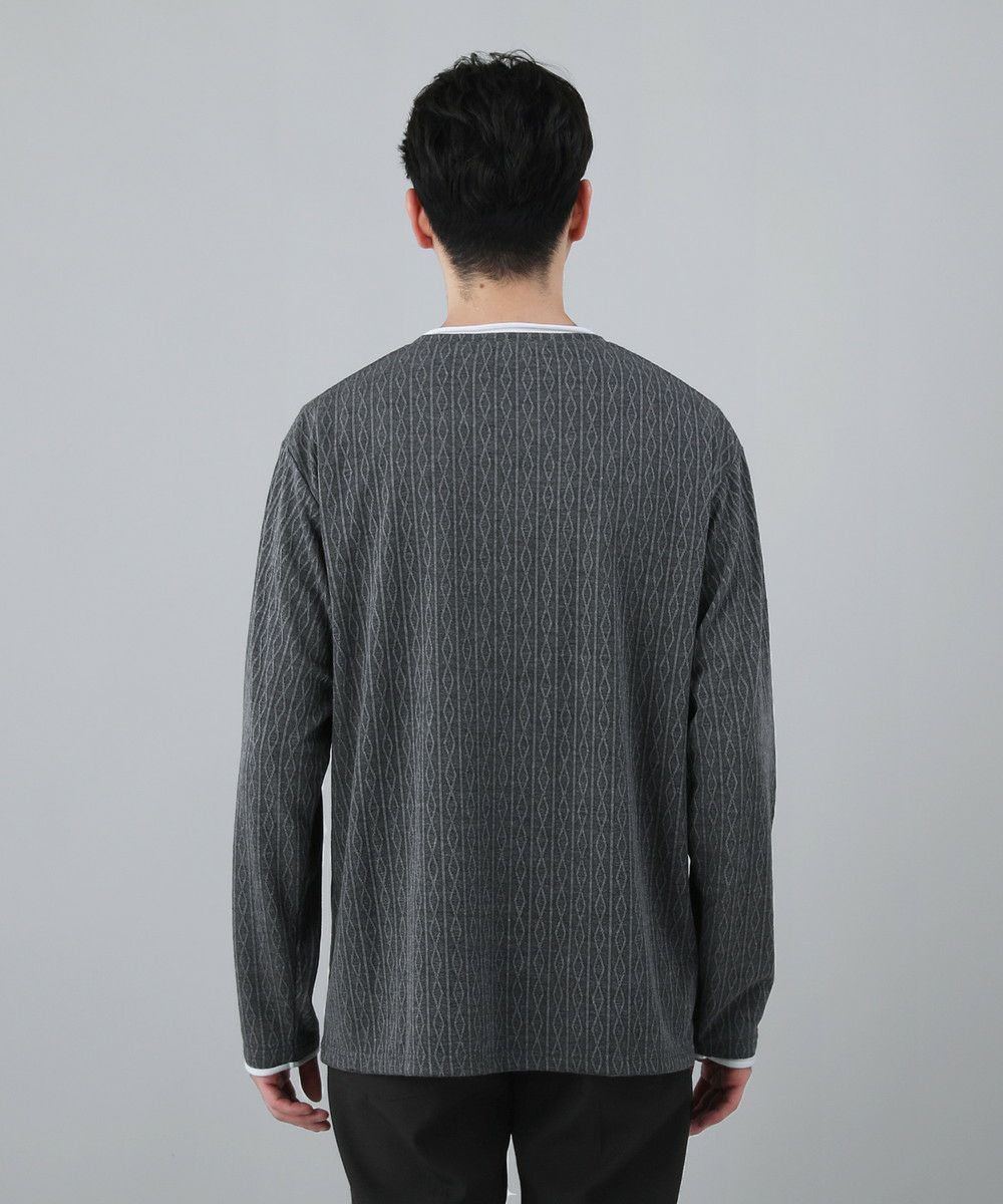 さり気ない菱柄の立体感が特徴のフェイクレイヤードカットソー。