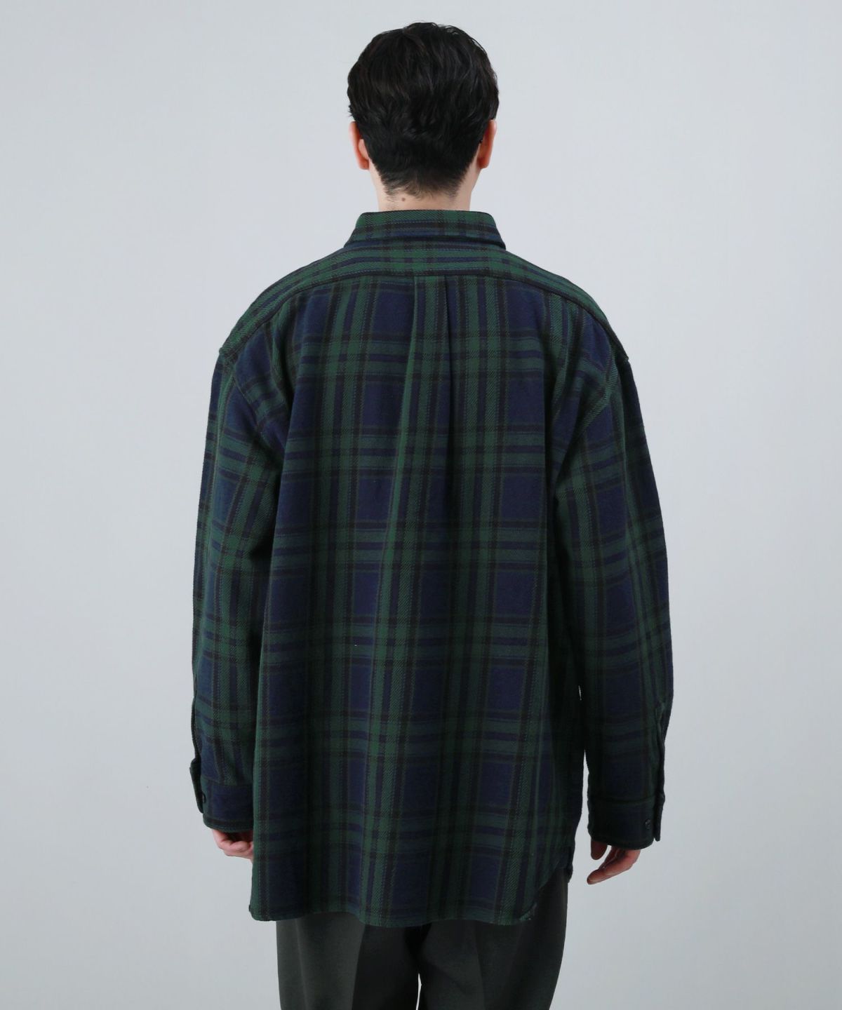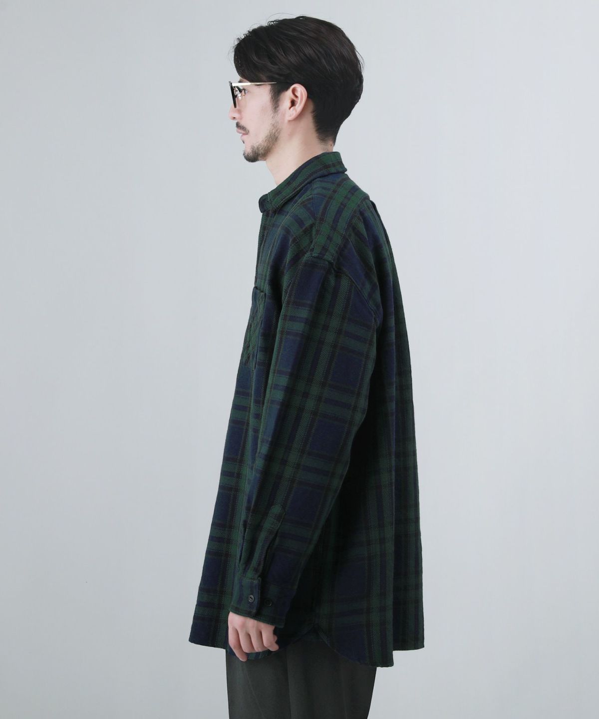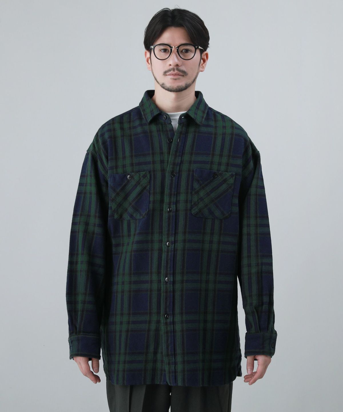 日本製10/2ヘビーツイルヴィンテージチェックレギュラーカラーボクシーAライン長袖シャツ