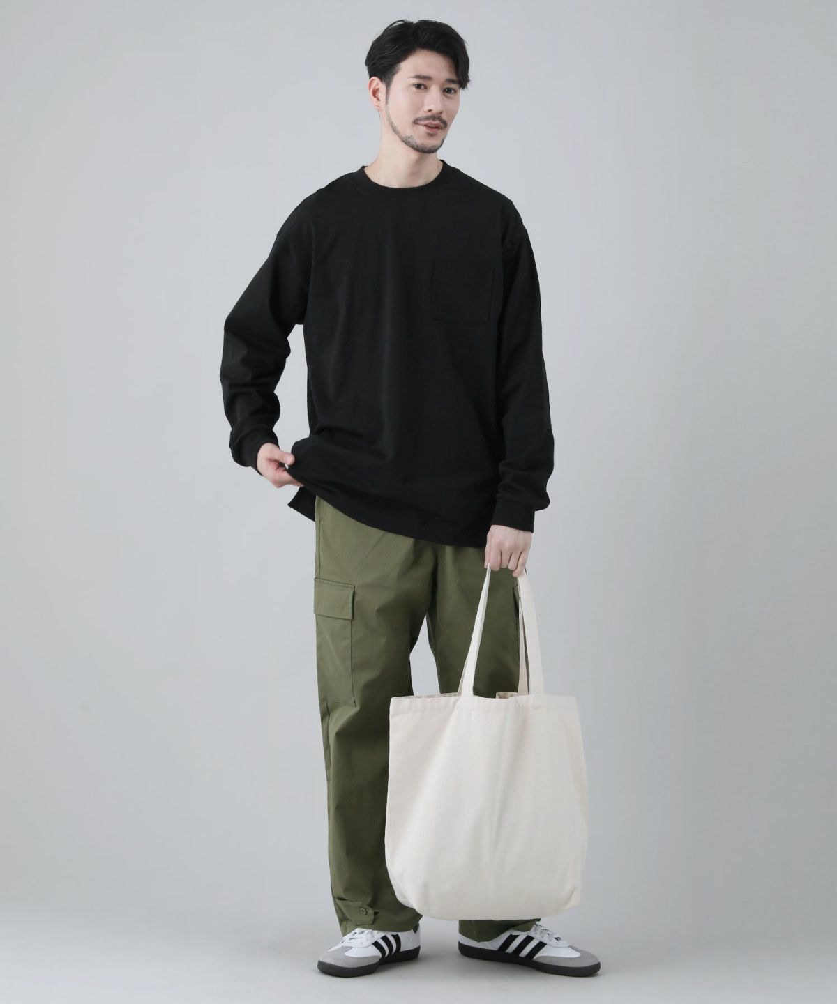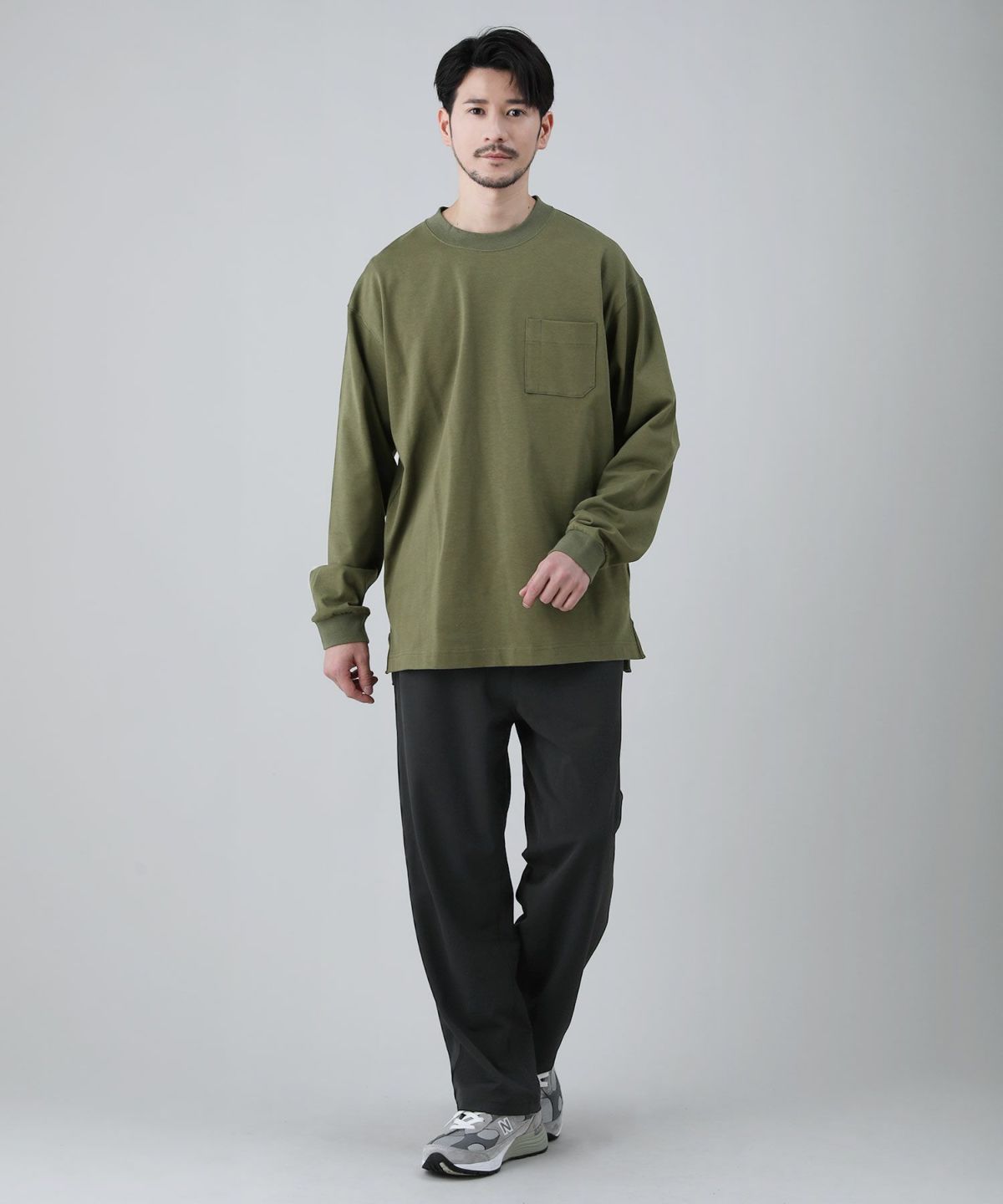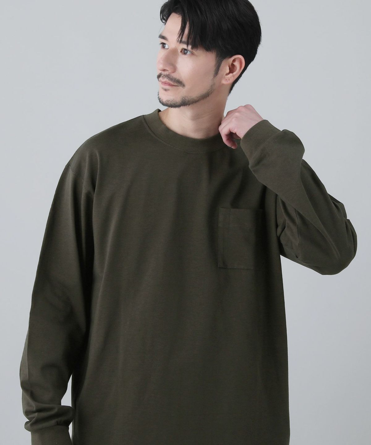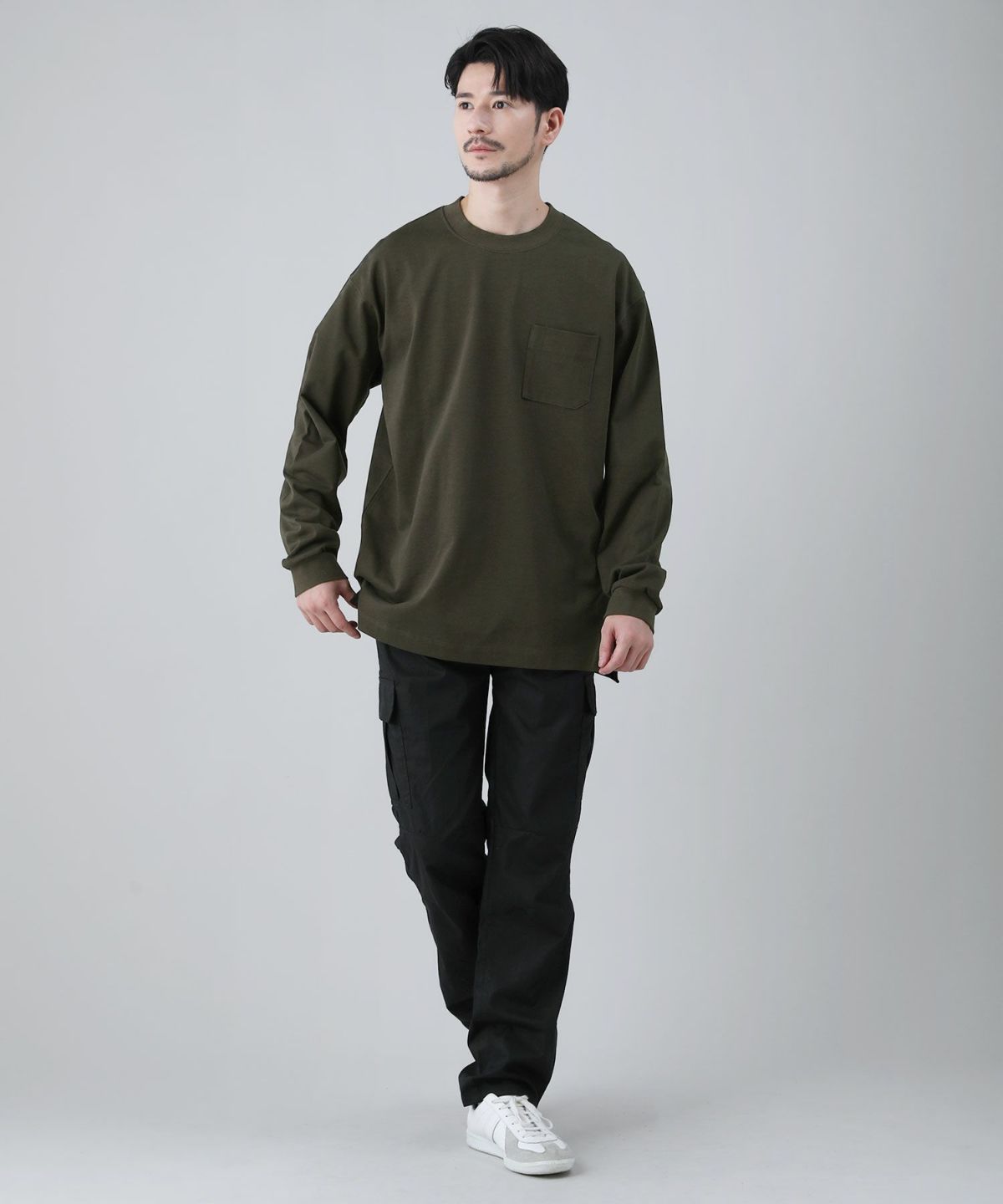 日本製VORTEX8オンス(MVS天竺)グラスポケ付きクルーネックテーパード長袖Tシャツ