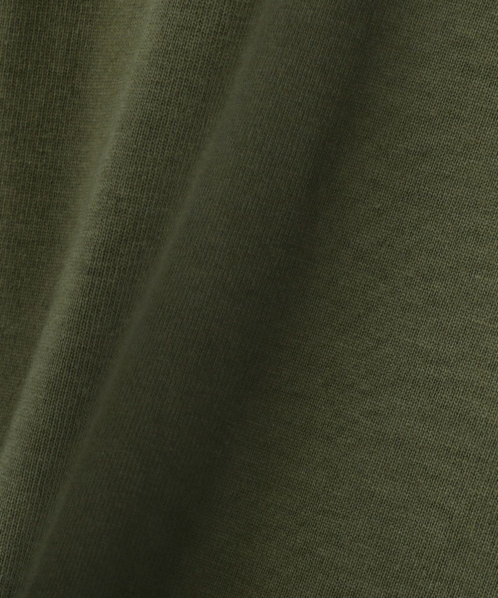 生地にはMVS天竺を採用しました。『MVS(ムラタ・ボルテックススピナー)』と呼ばれる特殊な紡績機械から作られたボルテックス糸という特殊構造の糸を用いて編み立てた生地です。毛羽が極めて少ないため毛玉ができにくく、摩耗に強いので長い間ご着用いただけます。ハリがあって柔らかい、綿100%の上質な生地です。