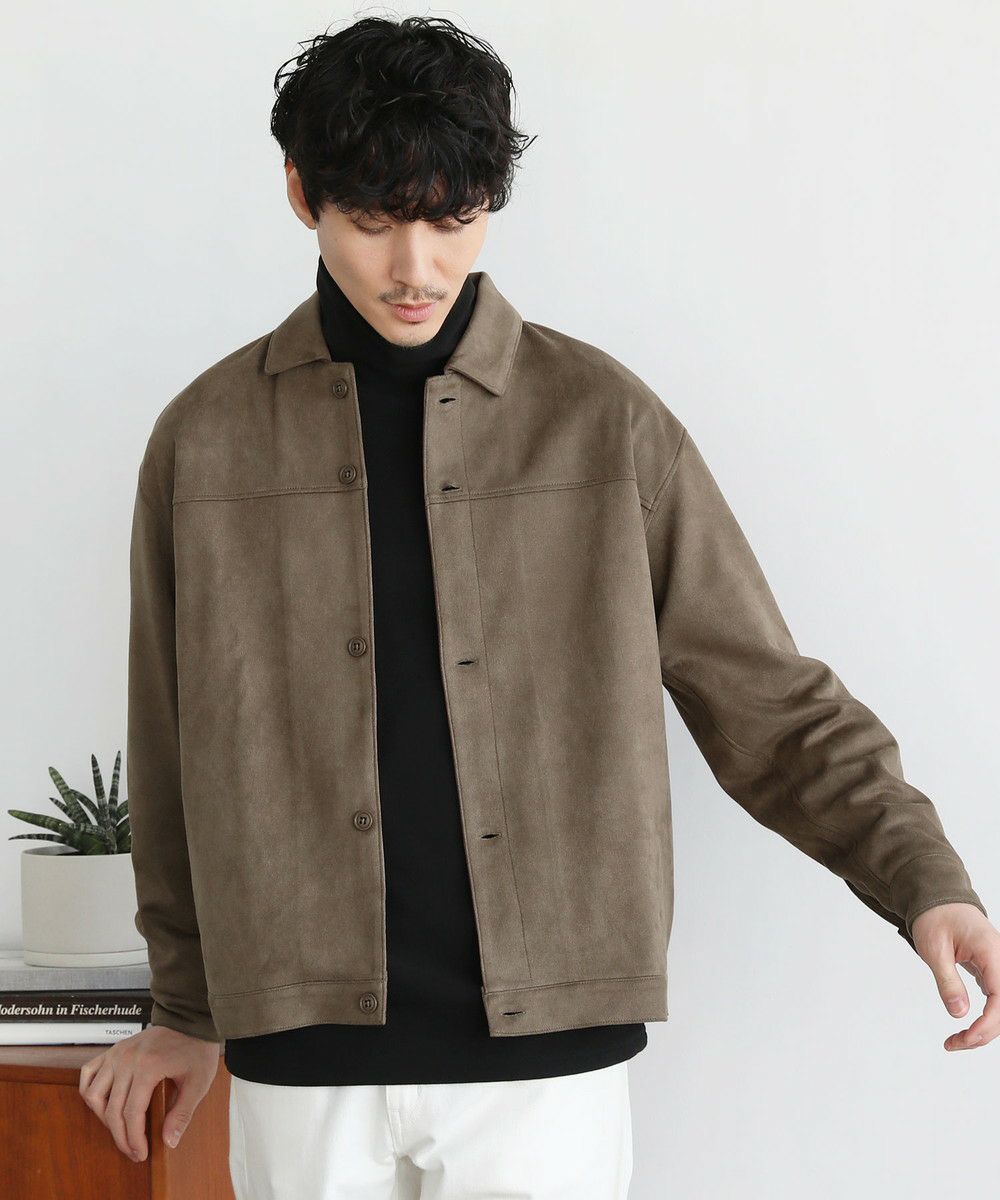 スウェード調の素材で仕立てた高級感のあるシャツジャケットです。