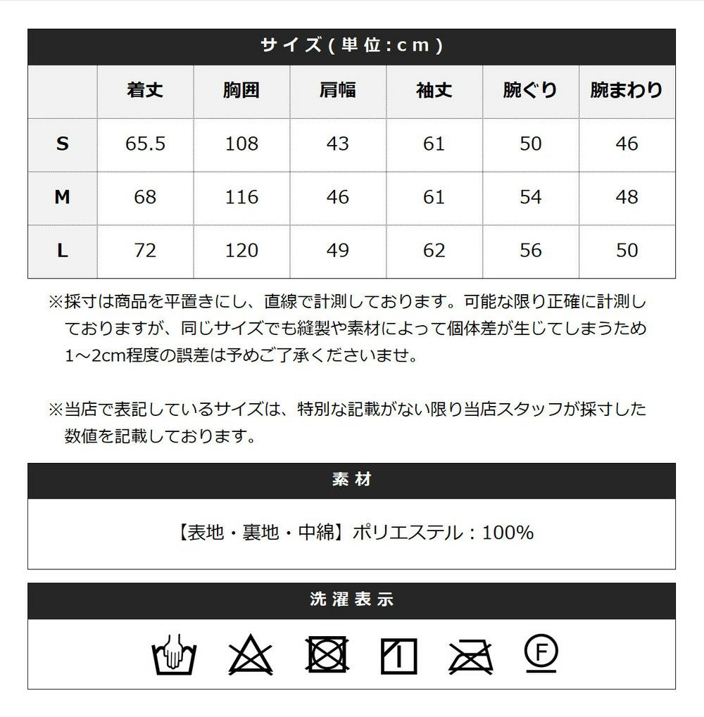軽量なポリエステル素材を使用。中綿にもポリエステルを採用した、ご自宅でのお洗濯が可能な一着です。生地表面は光沢を抑えたマットな質感で大人っぽい印象で着こなせます。