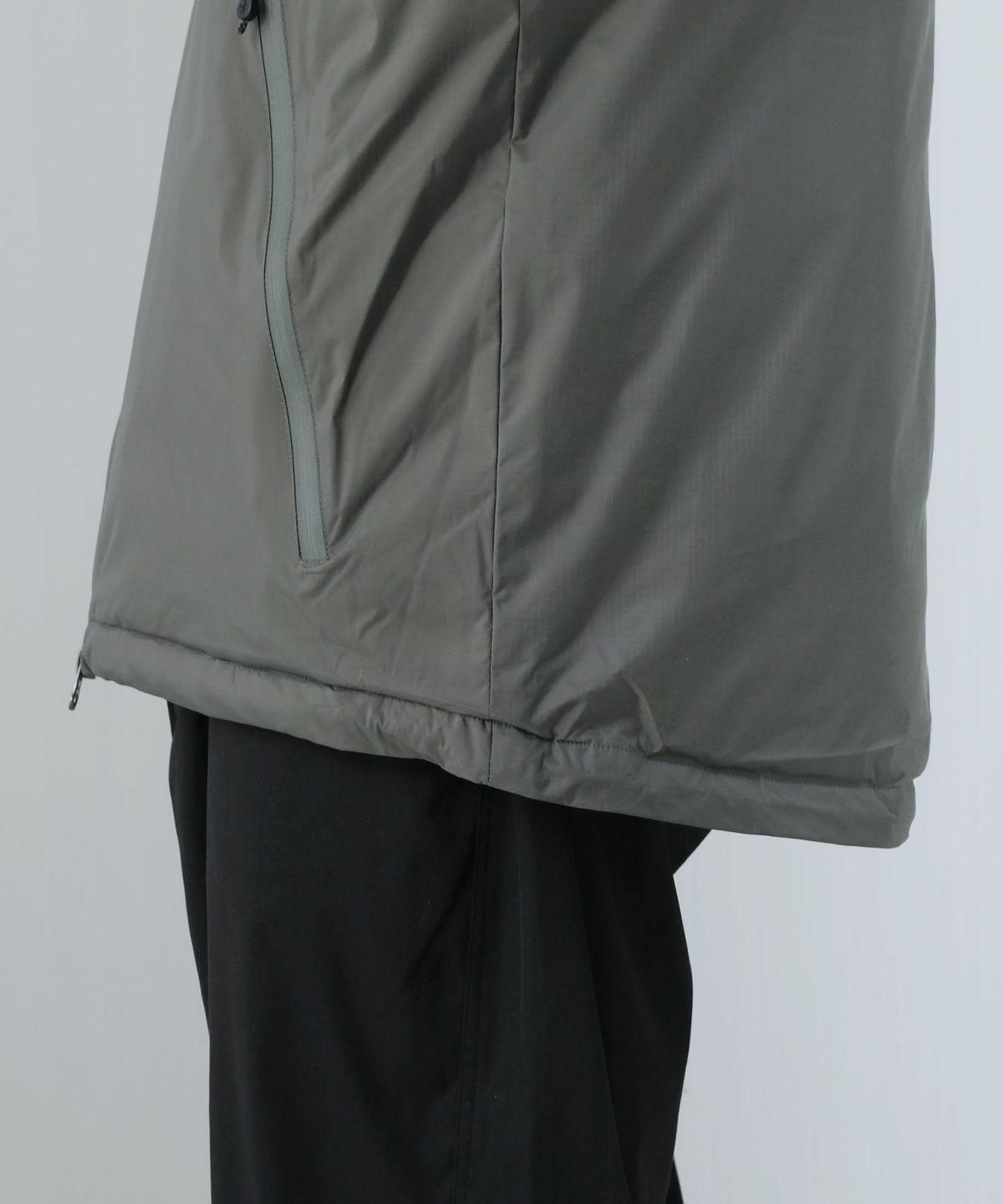 胸ポケットと左右のポケットには、手袋をしたままでも開けやすい引手付きのジップを採用しました。ワイヤレスイヤホンやスマホなどの小物を入れておくのにちょうど良いポケットです。
