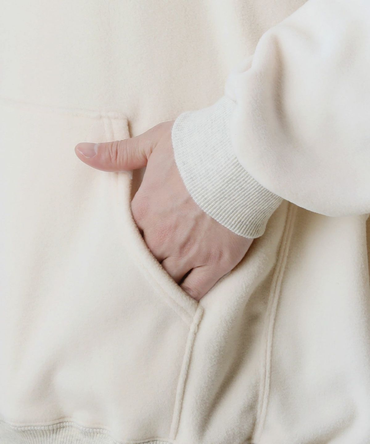 確かなクオリティを誇る『ポーラテック』社のフリースを使用しました。ふんわりとソフトな肌触りは、肌寒いシーンでも快適な暖かさをキープ。リラックスウェアとしてウィンターシーズンにぴったりのアイテムです。