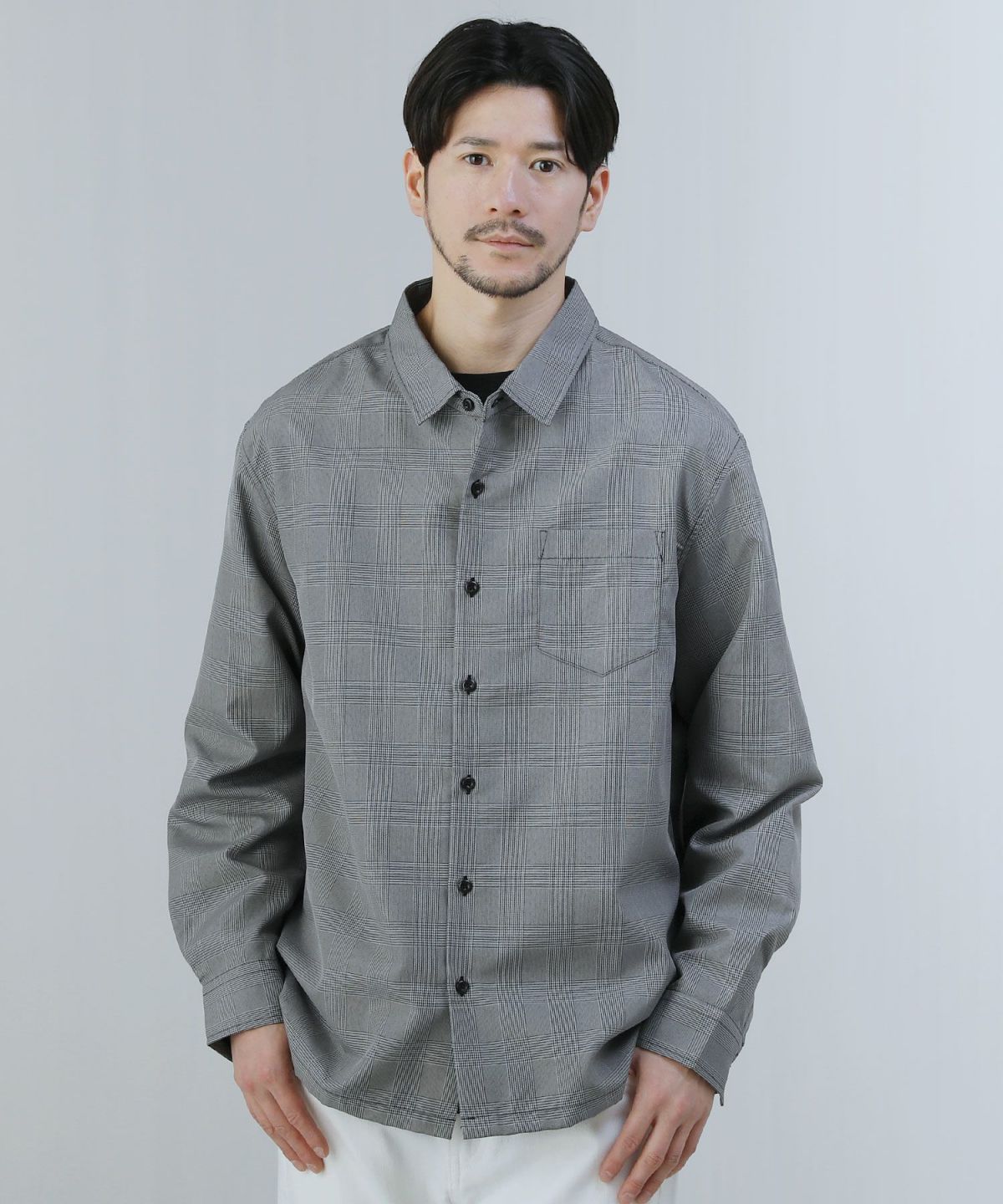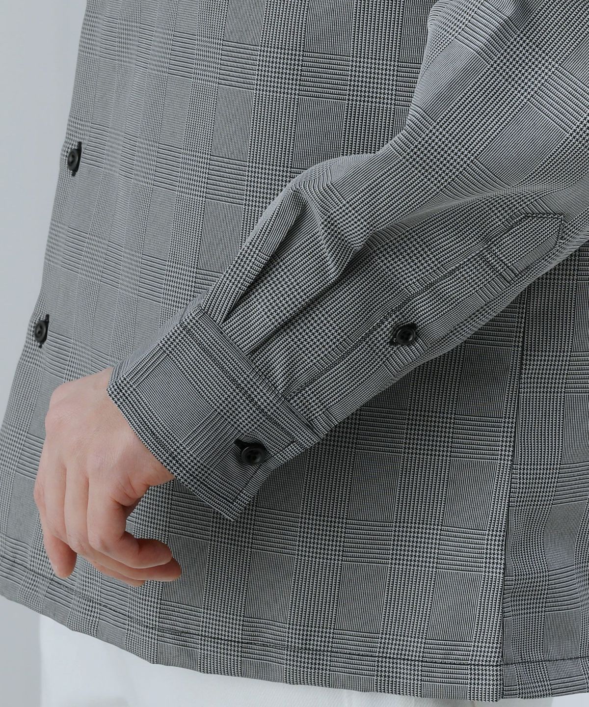 グレンチェック柄を施したグレーとブラックの2カラー展開で、引き締め感のある落ち着いた色合いが大人らしくクラシカルな印象に。ネクタイ不要のリモートワーク時の衣服としてはもちろん、デイリー向けの羽織りものとしてもオススメです。