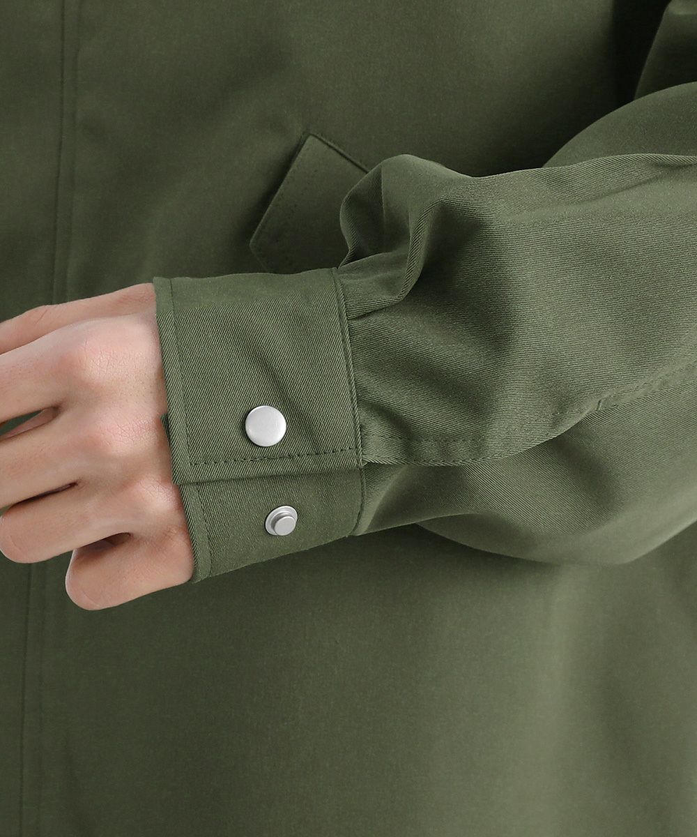 襟を立てても着られるように襟下にチンストラップを付けております。ストラップを留めてスタンドカラーにして着用すれば、よりクールで洗練された印象に。首回りを覆ってくれるので風除けとしても力を発揮します。2通りの着方で、着こなしの幅をさらに広げてくれるデザインです。