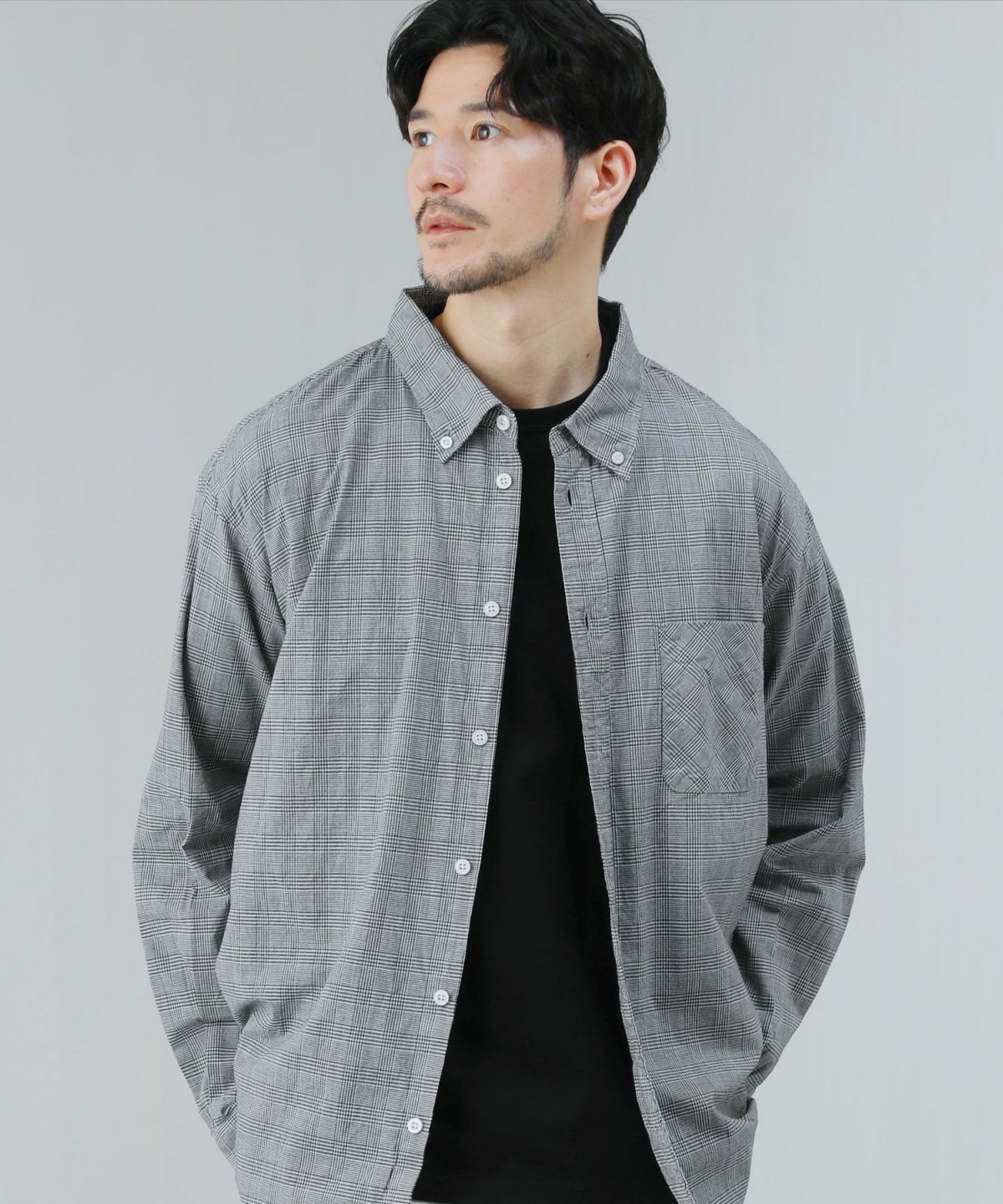 日本製ワンウォッシュボタンダウン長袖テーパードシャツ
