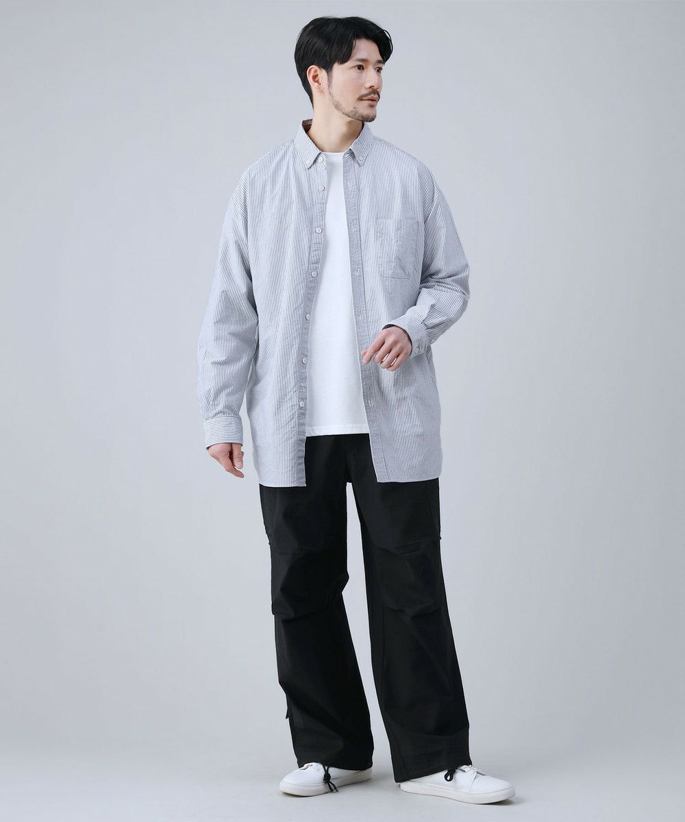 日本製播州織オックスフォードストライプボタンダウンボクシーAライン長袖シャツ