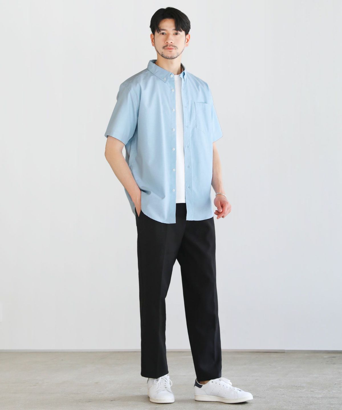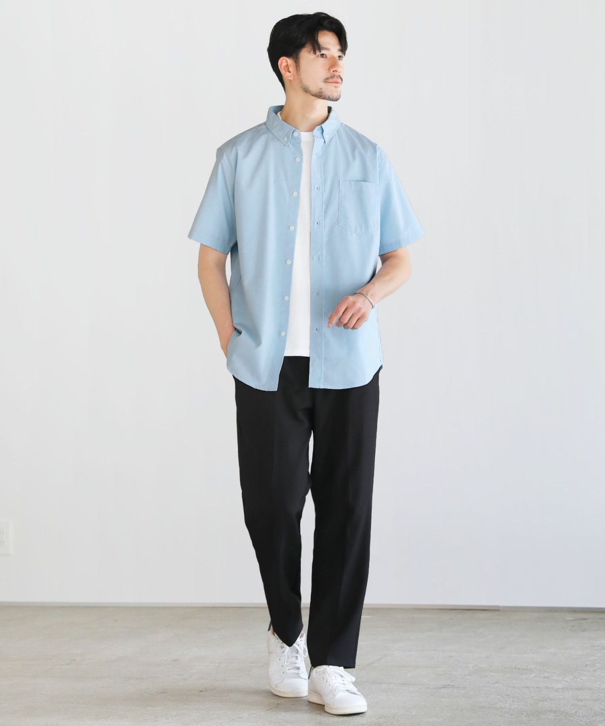 キレイめスタイルの定番オックスシャツ。定番アイテムだからこそ、大人が日常的に気軽に着られる着心地の良さと使い勝手の良さを重視して考えて作りだしました。日差しが照り付けるような暑い日に大活躍する涼しい半袖丈で、夏の羽織ものとしても便利な一着です。