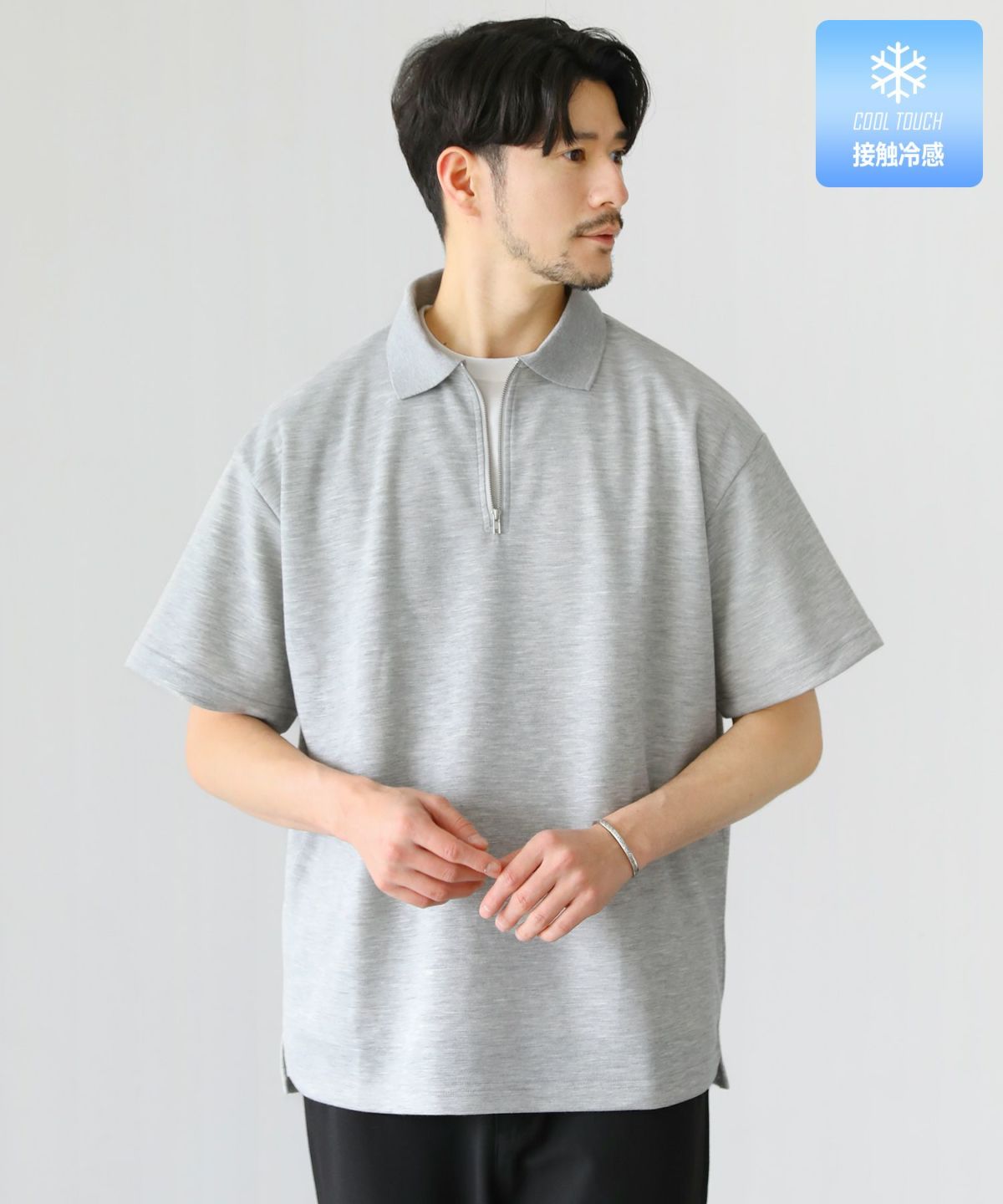 コーディネートに抜け感をプラスしてくれるハーフジッププルオーバー。ジップの開け具合でインナーとのレイヤードも楽しむことができ、着こなしの幅を広げてくれる一着です。素材には抗菌防臭機能と接触冷感機能を併せ持った特殊な生地を用いているので、汗ばむ季節の中でも涼しく清潔にご着用いただけます。サイズにゆとりを持たせており窮屈感のないラクな着心地で、ゆったりとしたルーズシルエットが簡単に今っぽい装いに仕上げてくれます。無駄がなく洗練されたデザインで、キレイめにもカジュアルにも合わせやすいアイテムとなっています。