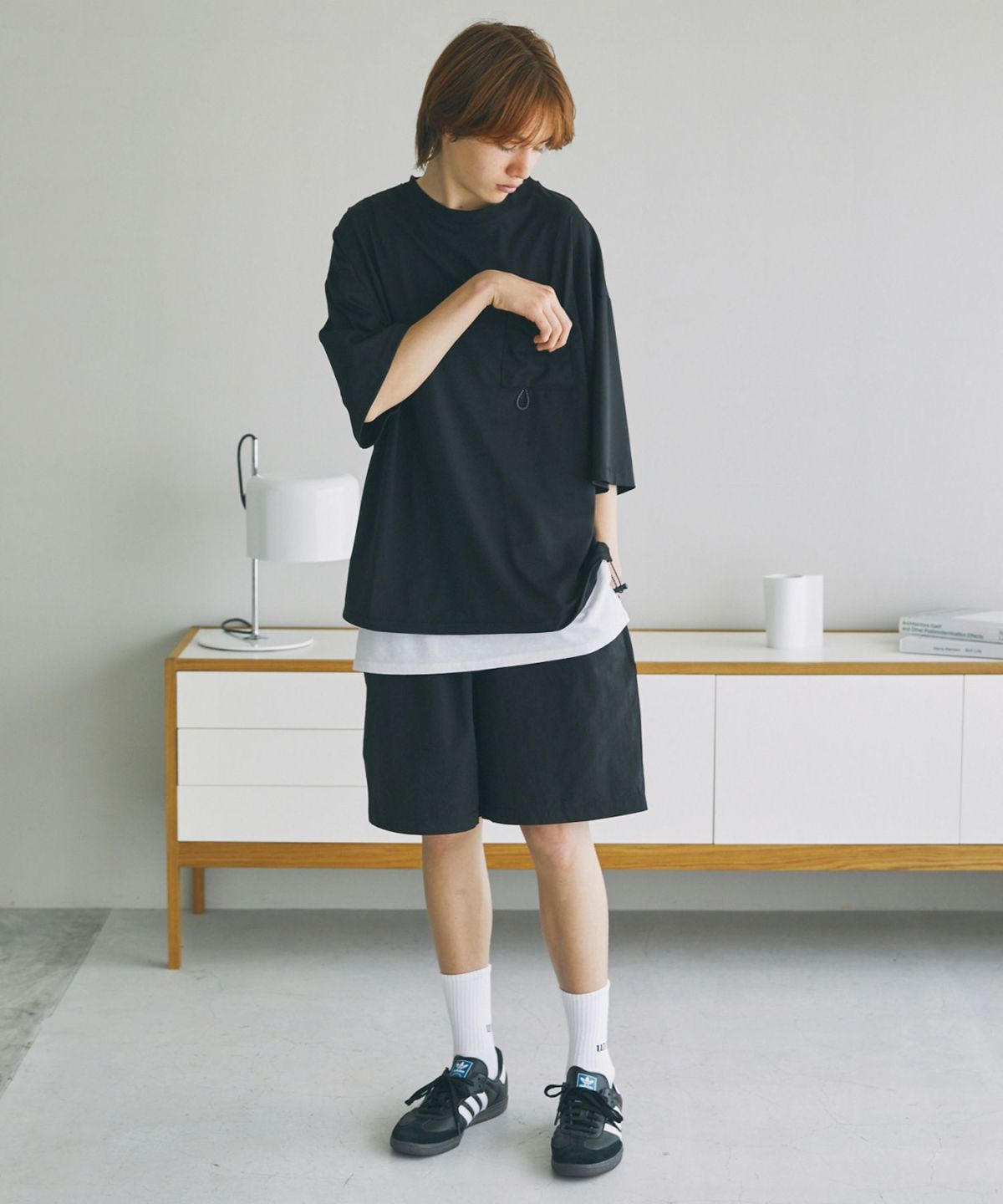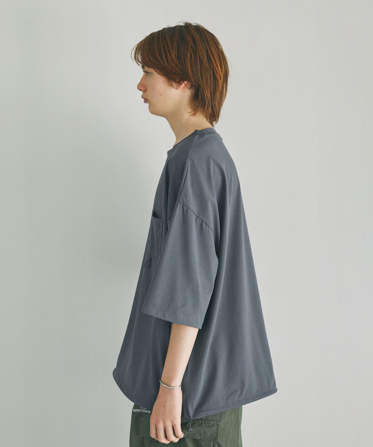 袖はゆとりのあるサイズ感に合わせて長めの丈感に設定しており、春先から晩夏まで長い期間ご着用いただけます。ハーフパンツと合わせた爽やかなコーディネートや、カーゴパンツと合わせたアウトドア感のあるコーディネートなど、様々な合わせ方でロングシーズン活躍する一着です。