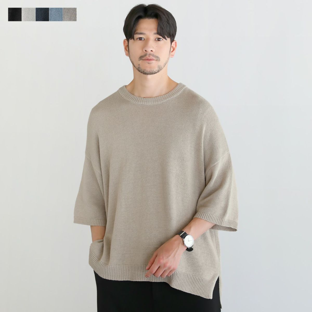 清涼感のある綿麻素材を使用した半袖サマーニット。