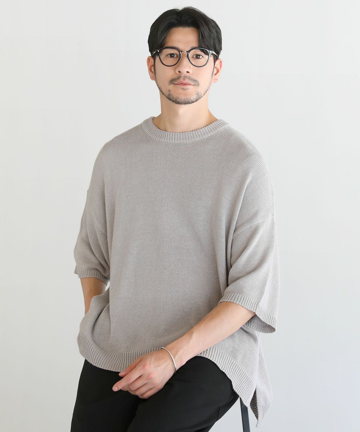 綿麻半袖クルーニット