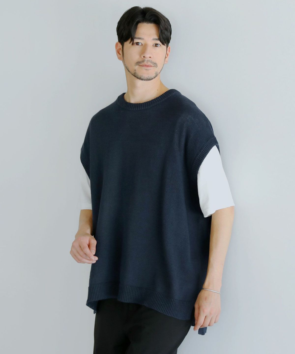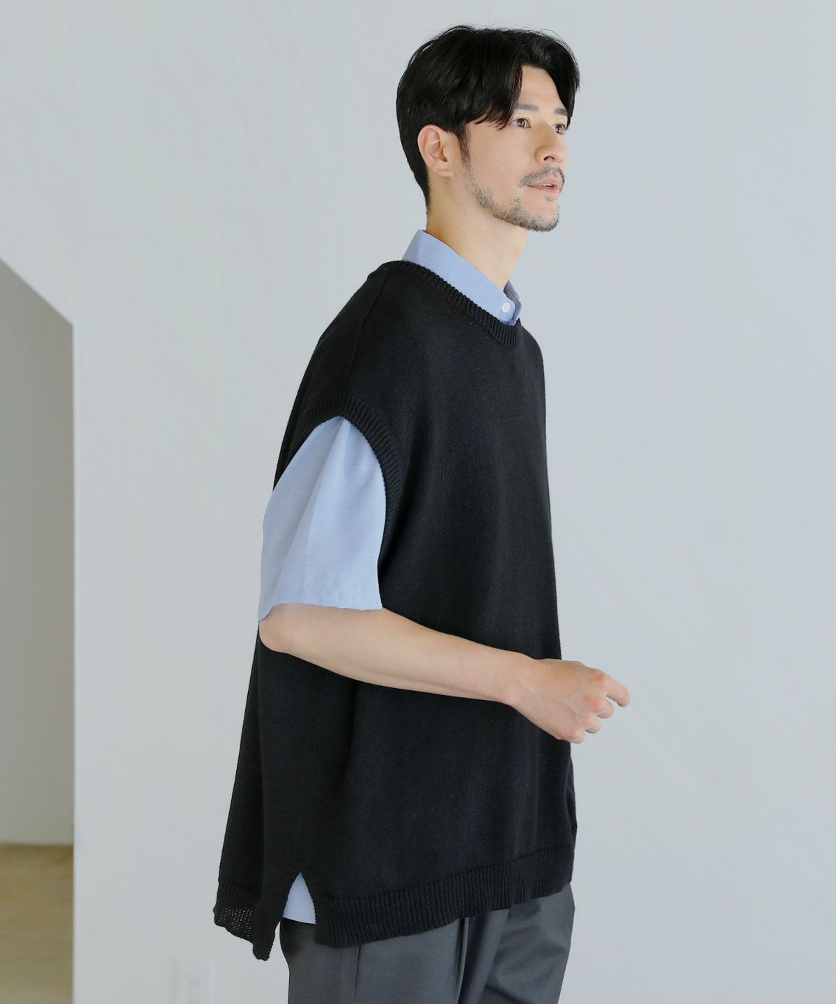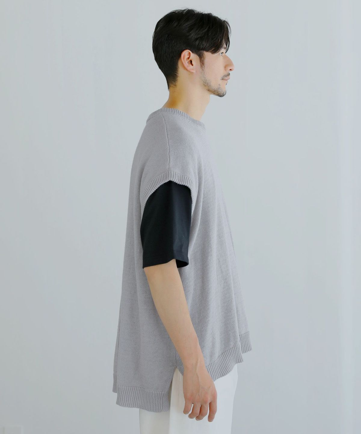 綿麻サイドスリットサマーニットベスト