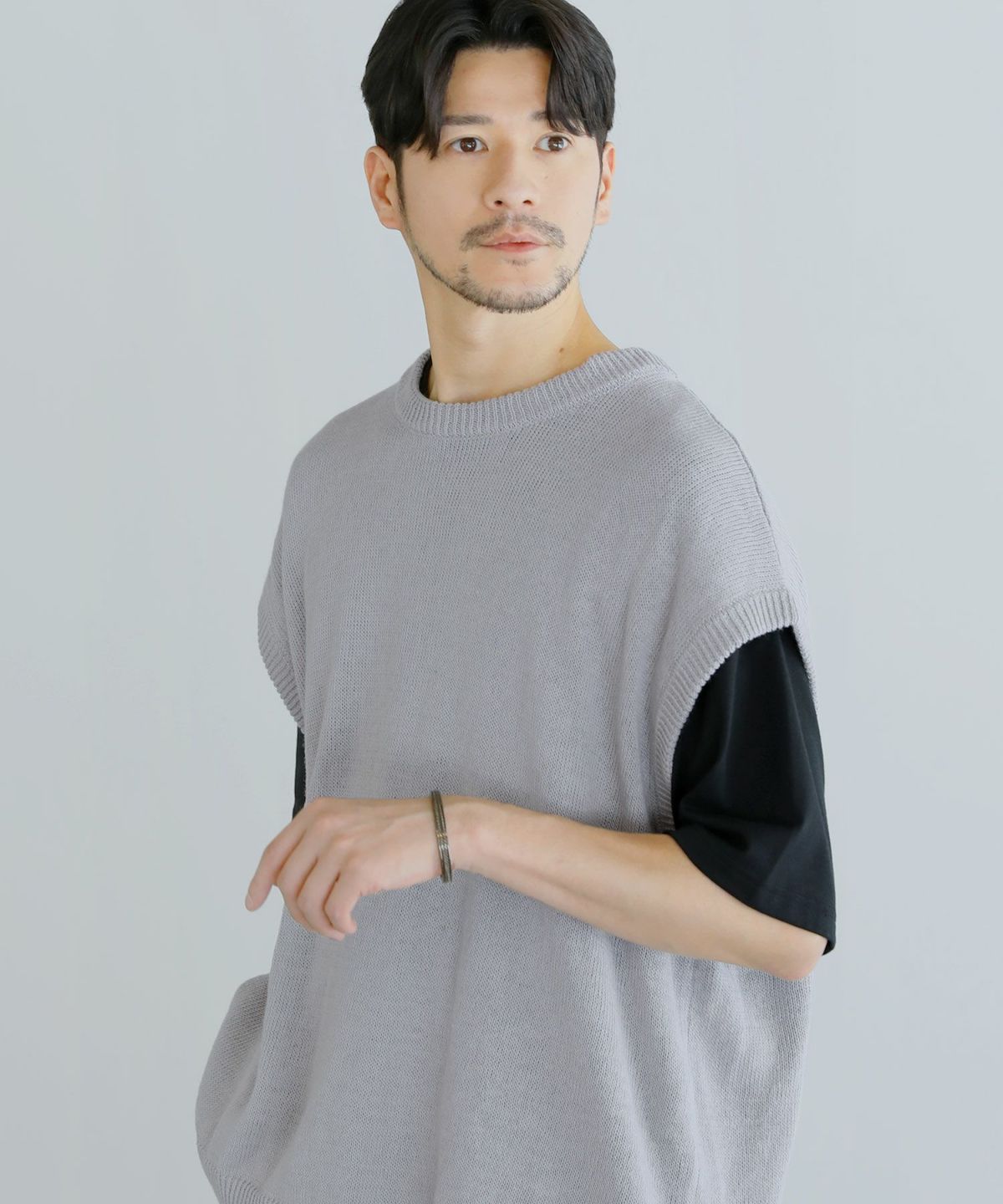 清涼感のある綿麻素材を使用したサマーニットベストです。