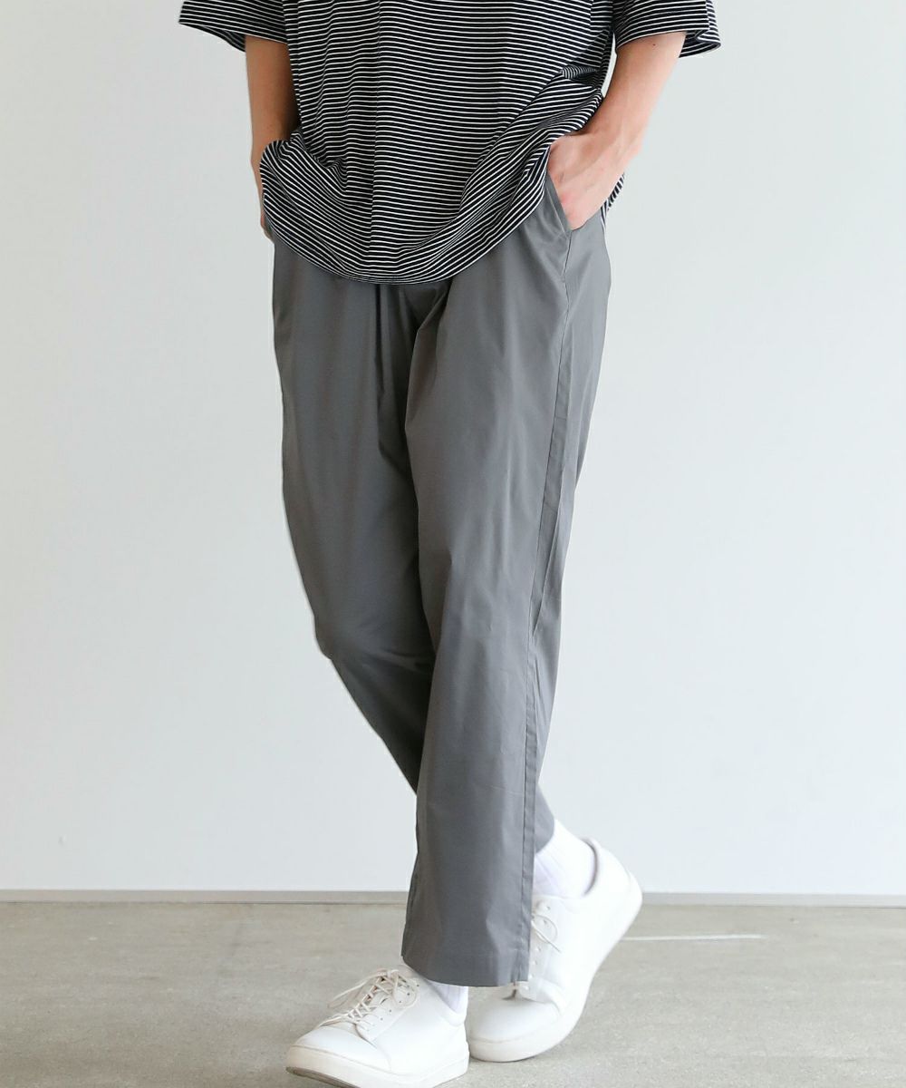 いくら軽くて丈夫であっても、動きにくいパンツであれば穿く機会は自然と減っていってしまいます。毎日でも穿きたくなるような一本を目指して、機能面にも抜かりなく設計いたしました。生地は斜め方向へのストレッチ性に優れたものを採用。靴紐を結ぶときや自転車に乗るときなどの膝の突っ張り感を軽減します。ウエスト後ろ側にはゴムを入れて脱ぎ穿きしやすいイージー仕様に。実用性の高いフロントファスナーとベルトループも付けました。タックインスタイルもお手の物。ゴルフ場でもご利用いただけるような動きやすさと日常的に着回したくなるラクさを併せ持つ夏パンツに仕上げております。
