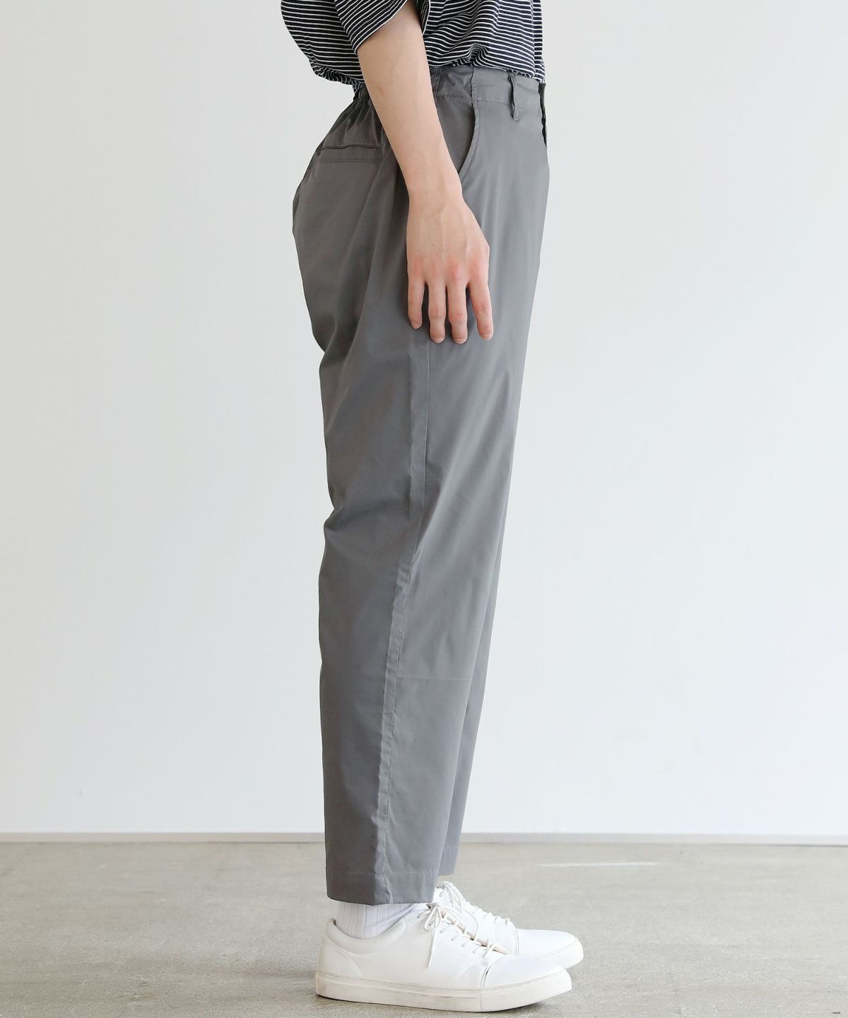 『とにかく穿き心地が良いパンツ』ただそれだけではお洒落な装いは完成しません。『軽くてラクで、そのうえ見た目もお洒落に決まる。』そんな理想の夏パンツを追求し、キレイめスタイルを提案し続けるSPUならではの美しいシルエットに仕上げました。丈感はくるぶしが見えるか見えないかくらいのジャストレングスで涼し気な印象に。程よいゆとりを持たせた美しいテーパードシルエットでキレイめ夏コーデをより一層カッコよくしてくれる、理想をすべて詰め込んだ欲張りな一本となっております。
