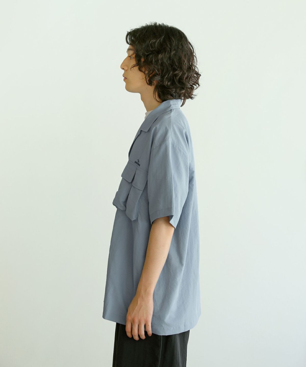 胸刺繍ロゴマルチポケットオーバーサイズテックワッシャーナイロン半袖シャツ