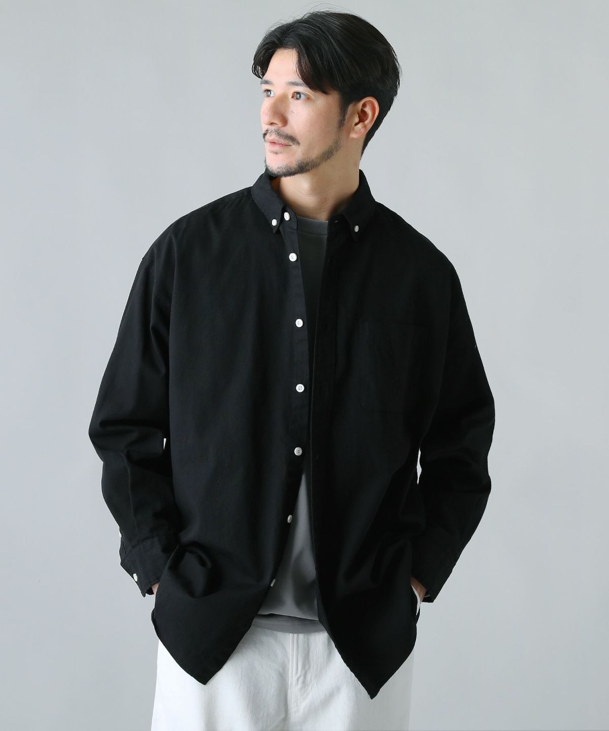 日本製 6オンスオックスフォードボタンダウン長袖ボクシーシャツ