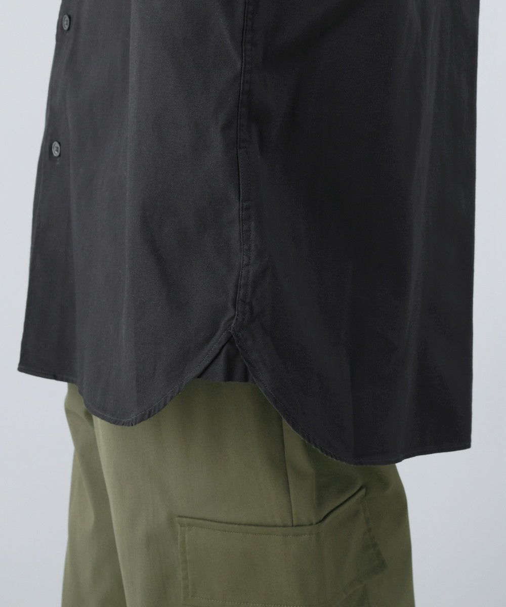 デザインは60年代のビンテージITARY NAVY(イタリア海軍)をモチーフ。クラシックな要素の強いデタッチャブルカラーをバンドカラーにし、襟の高さはやや低めに設定してあります。小ぶりな襟、裾両脇のガゼット(マチ)がついているのが60年代シャツの特徴で、前立てが表側に出ない裏前立てにすることで、ドレッシーにも、カジュアルにも着用ができるようになっています。