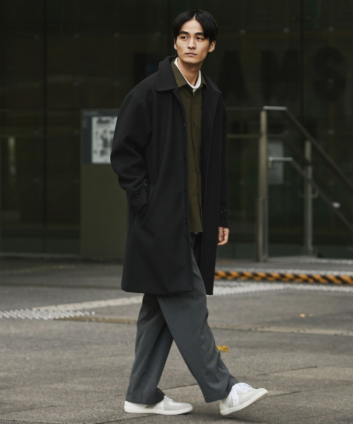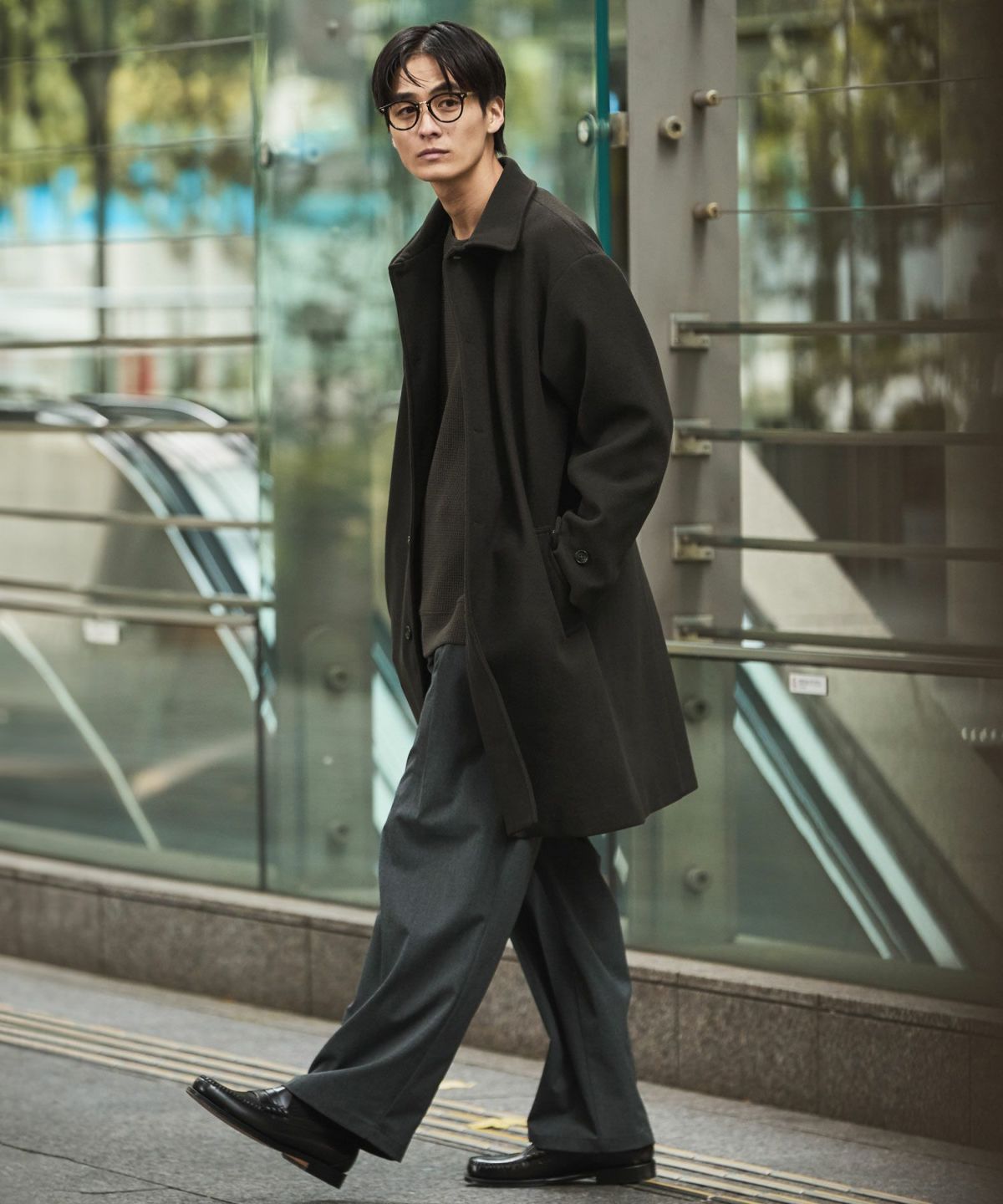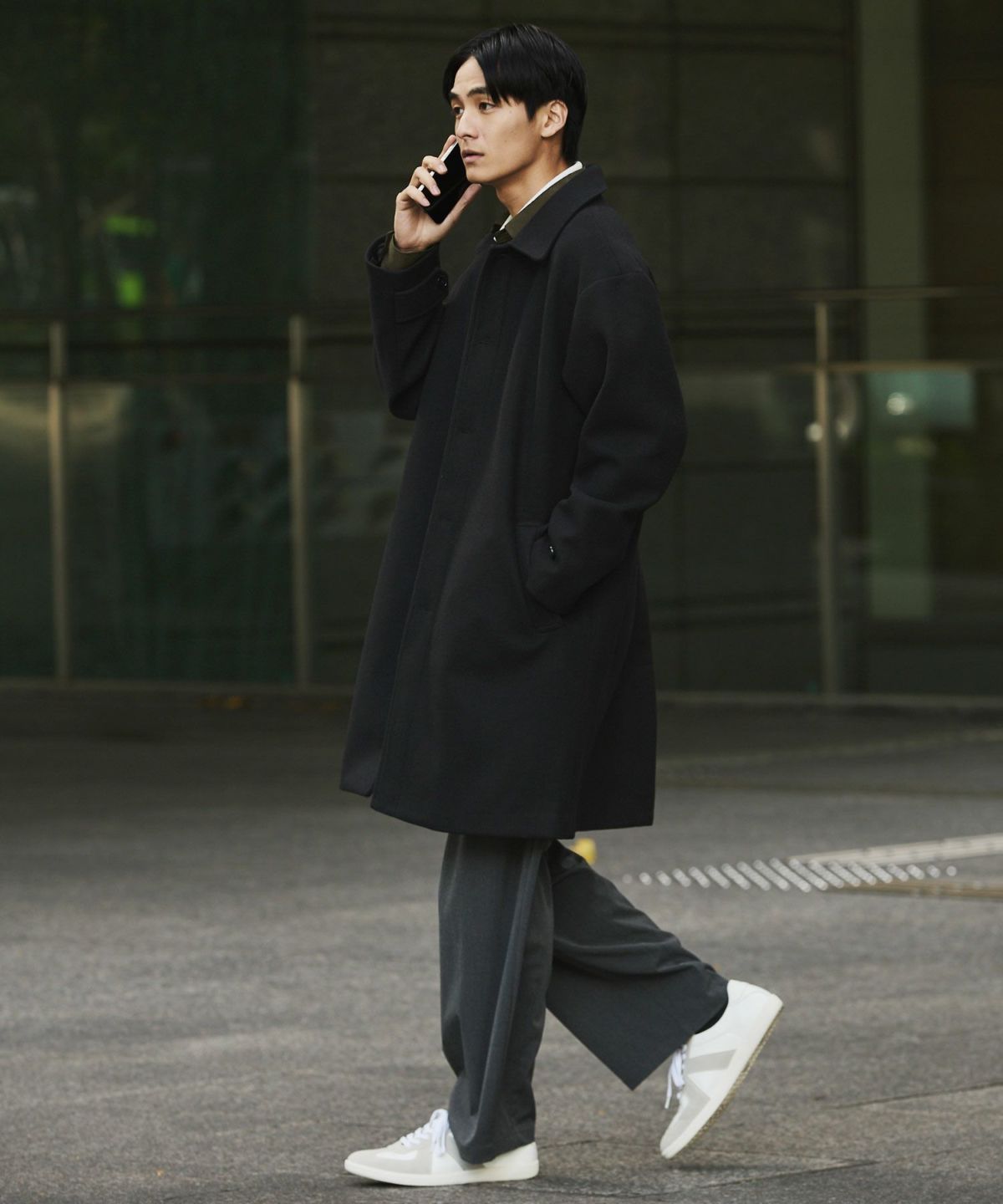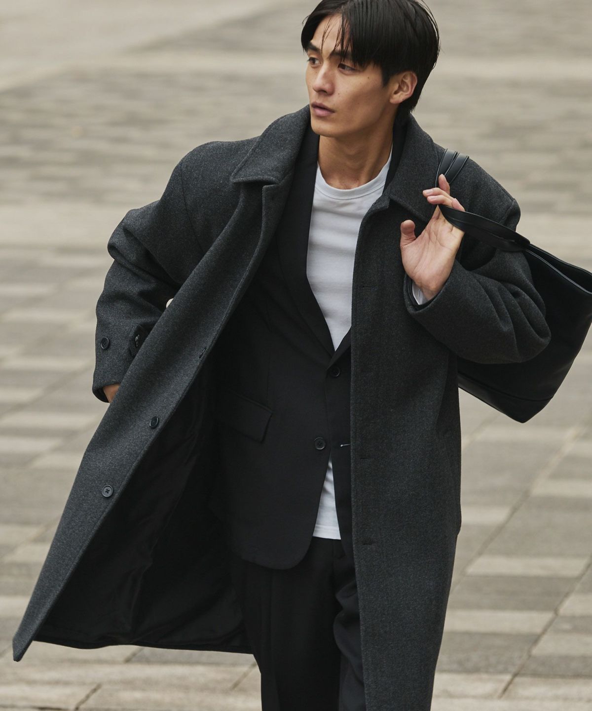 あらゆるキレイめコーデと相性が良いだけでなく、スーツスタイルにまで合わせることができてオンオフどちらでも活躍してくれるステンカラーコート。冬はこれさえあれば困らないと言っても過言ではないマストバイアイテムです。昨今トレンドのオーバーサイズアイテムを中に着たとしてもごわつかないように、シルエットはルーズめに設計しております。ゆとりがあるので厚手のニットの上からでも羽織ることもでき、インナーの重ね着も無理なくしていただけます。