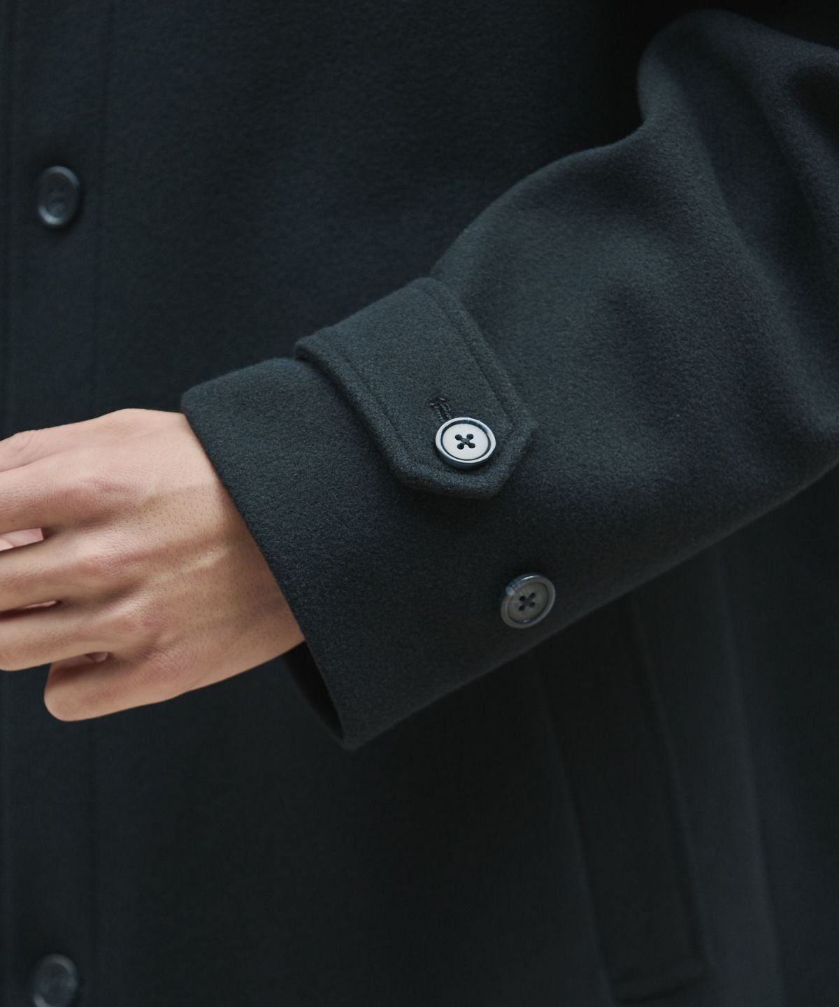 冬のキレイめコーデの必須アイテム、メルトンステンカラーコートです。