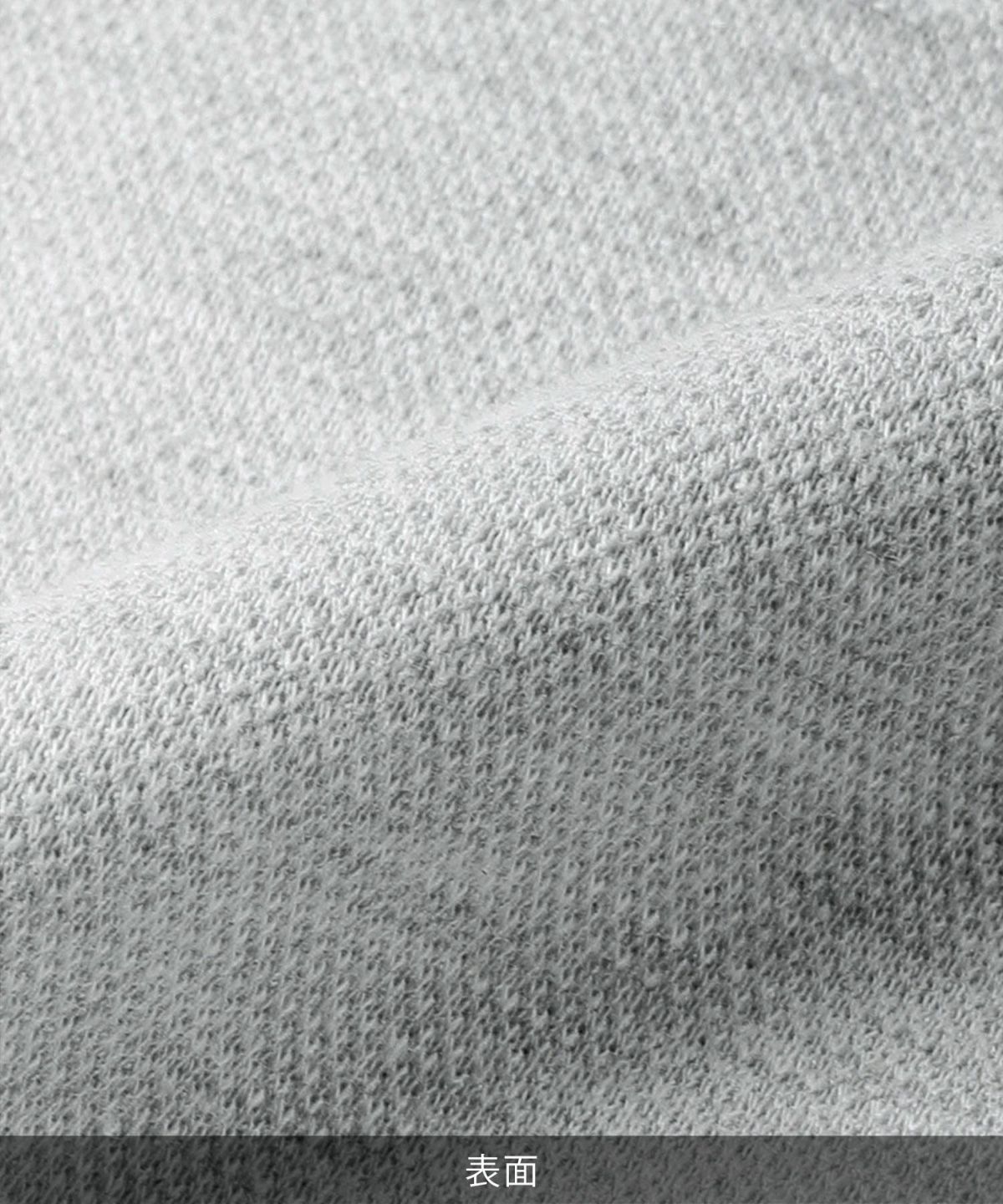 表面と裏面とで編み方が異なる、ダブルフェイス生地を用いました。表面はポロシャツらしい細かな鹿の子編みに、裏面は一般的なカット地のような編み方になっております。 ダブルフェイス生地は表と裏が別の編み方になるため、通常の生地に比べて厚みが増します。このように生地に厚みを出すことで、チープな印象になることを防ぎ、上質な雰囲気のポロシャツへと仕上げております。