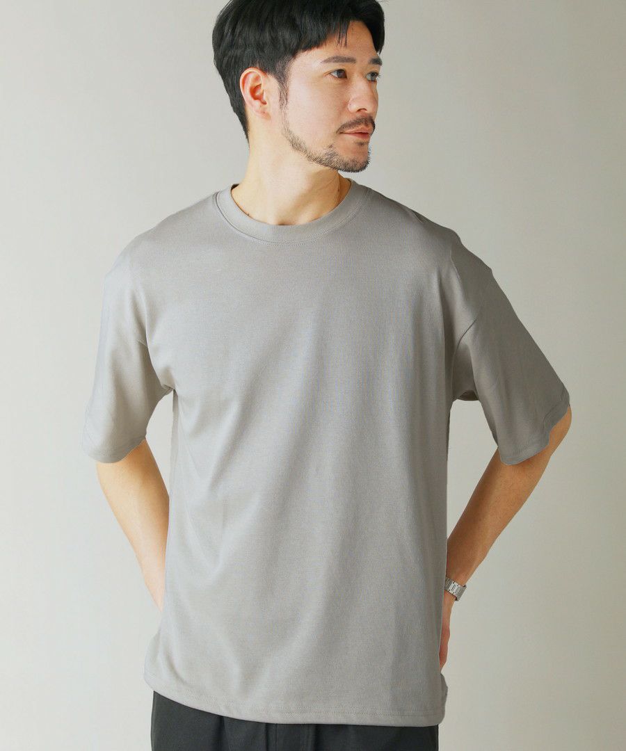 ゆとりのあるサイジングや肩を落としたドロップショルダーなど、締め付け感のないラクな着心地のアイテム。着こなしに変化をつけられるように裾にドローストリングを付けました。ベーシックなTシャツとして着用するだけでなく、裾を絞ることでバルーンシルエットでも着回していただけるデザインです。 身体のラインを拾わない程度にゆとりを持たせ、インナーとして着たときにごわつかず、一枚で着たときも絶妙なシルエットになるように調整しています。襟ぐりは綿100%のリブを使った伸縮性のあるクルーネックに。シンプルさの中にも、着回し力と着心地へのこだわりを詰めた一着となっています。