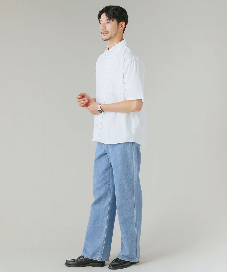 日本製ワンウォッシュボタンダウン半袖テーパードシャツ
