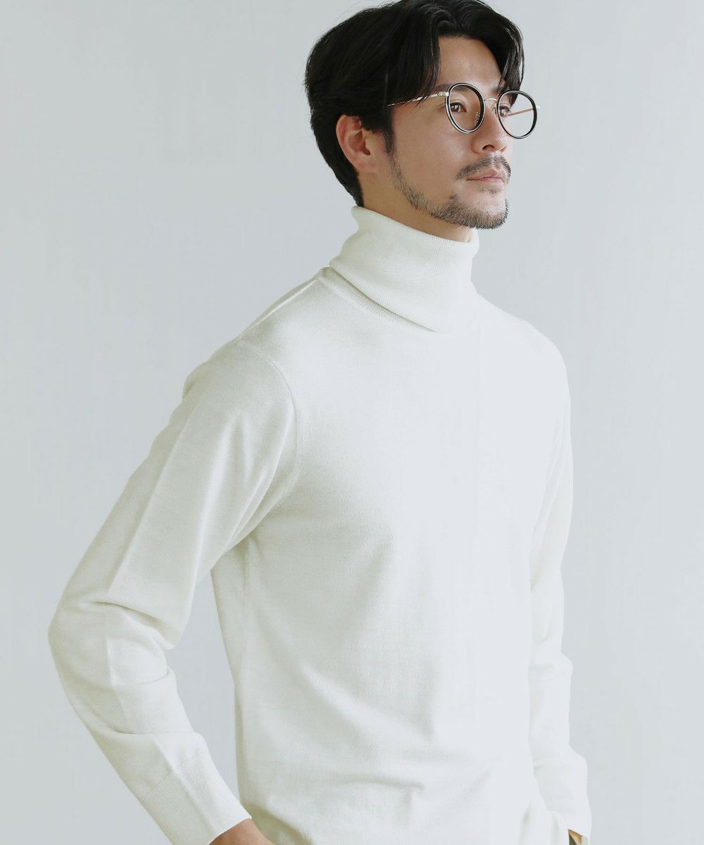 ウォッシャブル/抗ピリング 14Gシープカシミヤタッチタートルネックニット