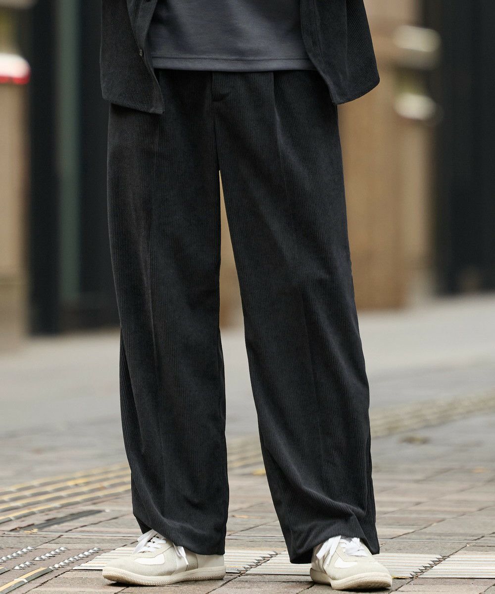 〓予約販売・一部1月上旬頃発送予定〓 TR/コーデュロイ リラクシングタックワイドスラックスパンツ