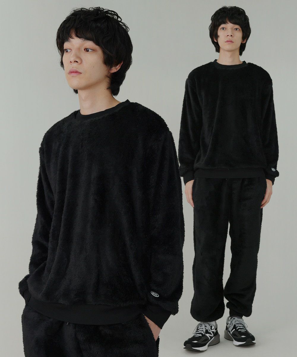 全体的にゆとりを持たせたシルエットが、自然な落ち感を生みリラックス感のある雰囲気に。本体の生地に優しい肌触りのボアフリースを採用することで、肌をしっとりと包み込みお家でのリラックスタイムをグレードアップします。リブに締めつけ感のない柔らかな素材を使用しているため、長時間着ていても負担を感じにくくなっています。