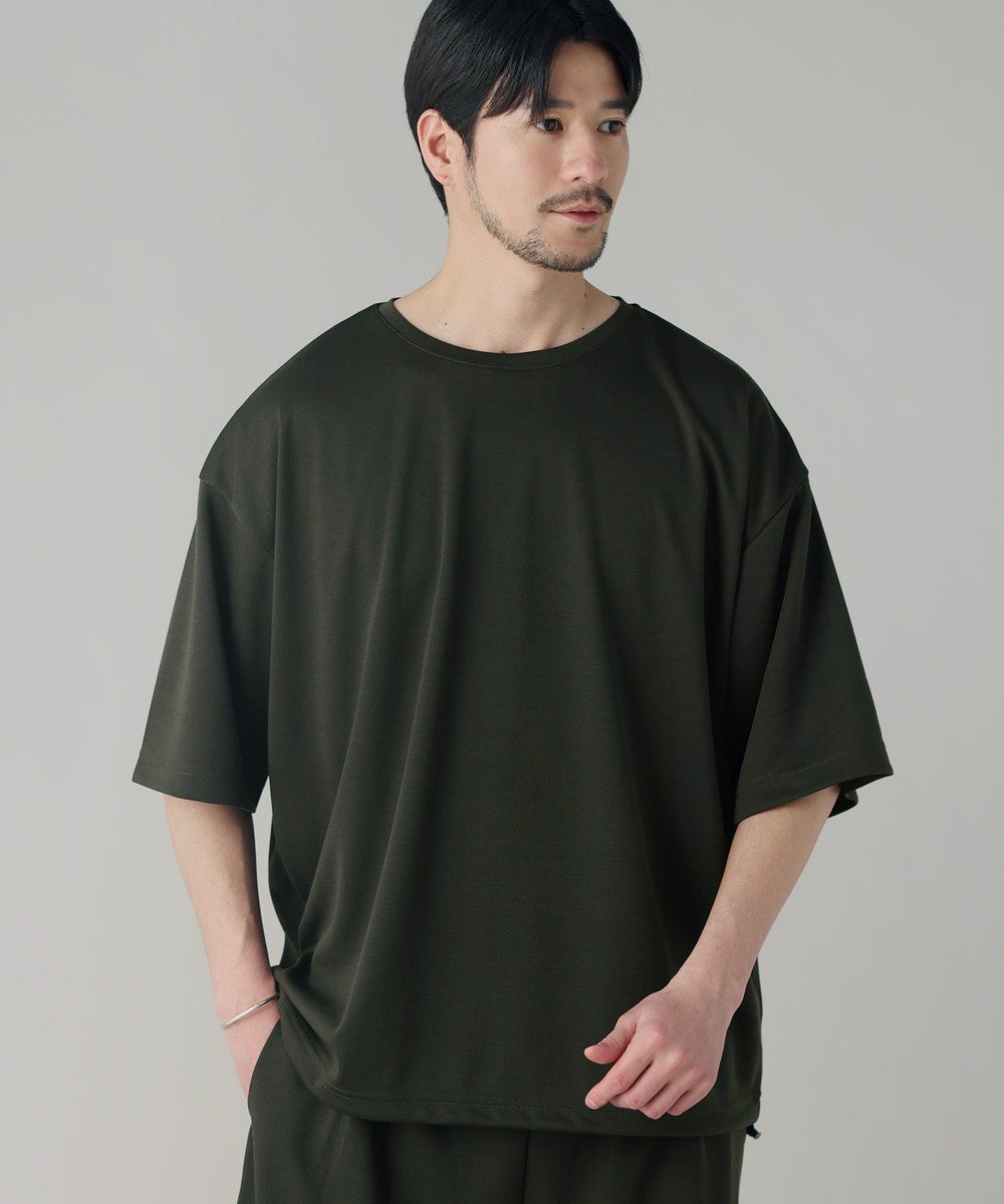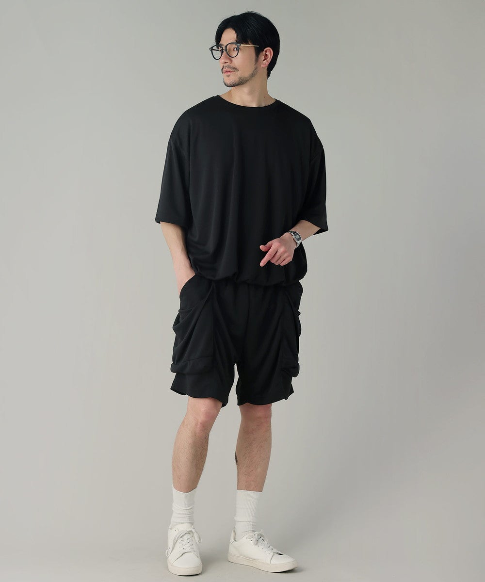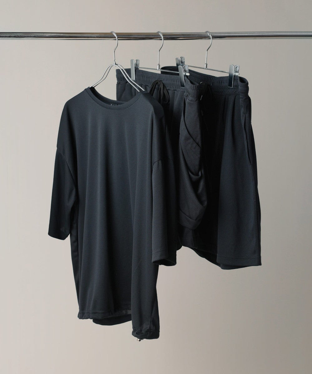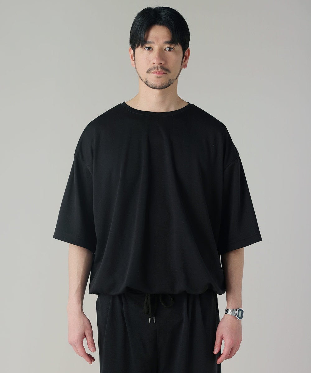 【セットアップ対応】日本製POLARTEC(R) POWER DRY(R)鹿の子ドローコードバルーン半袖クルーネックTシャツ