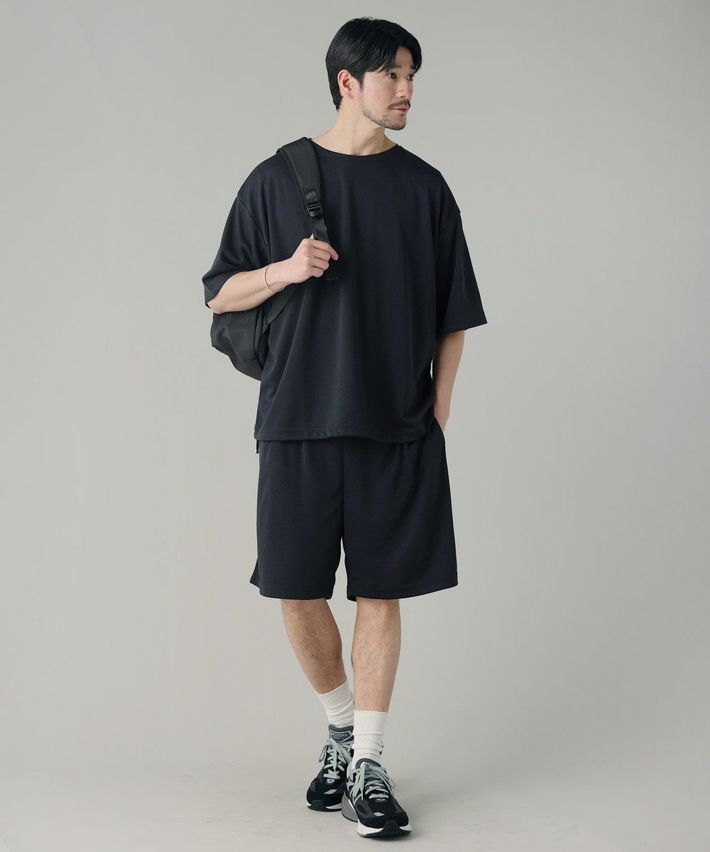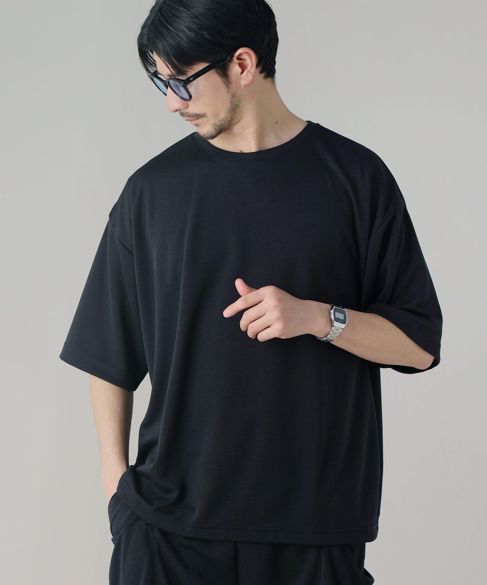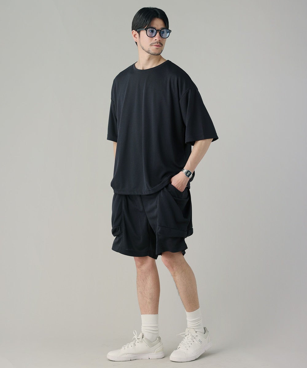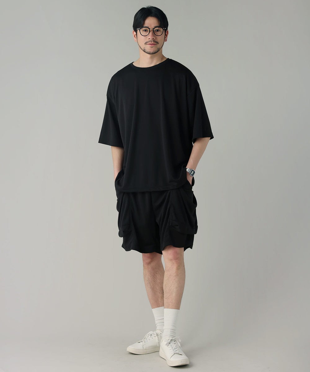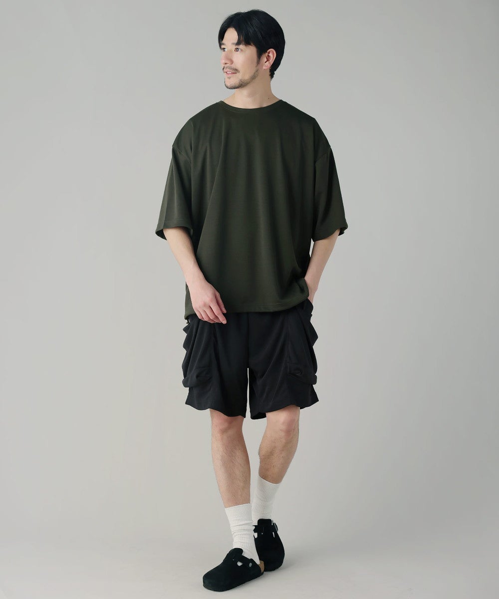 【セットアップ対応】日本製POLARTEC(R) POWER DRY(R)鹿の子ドローコードバルーン半袖クルーネックTシャツ