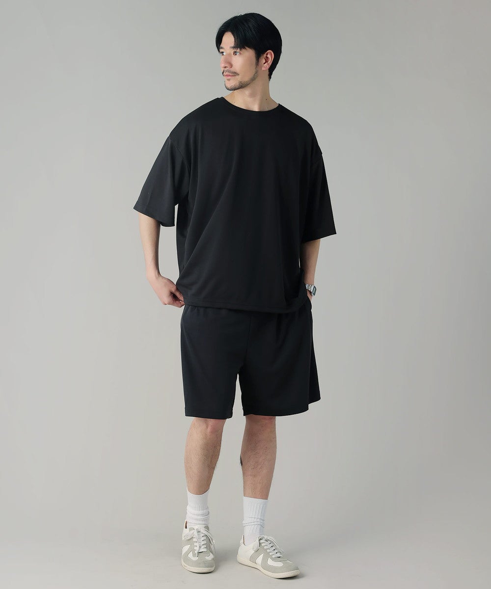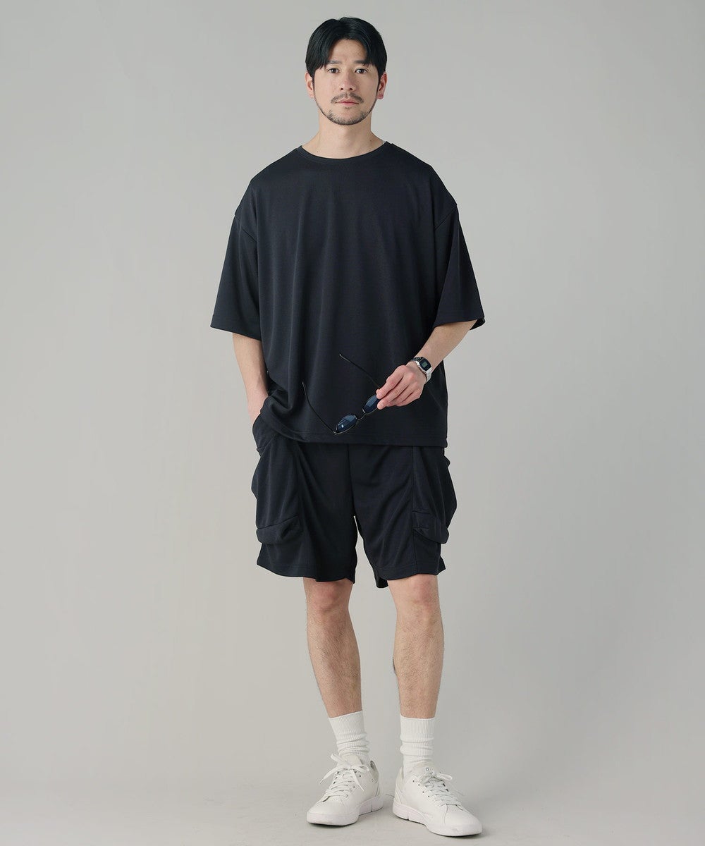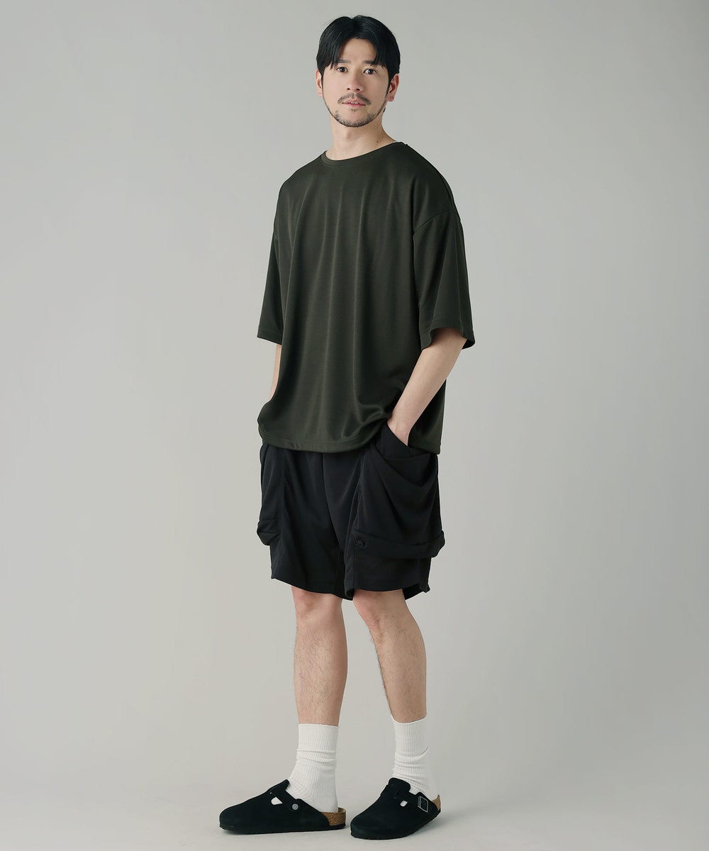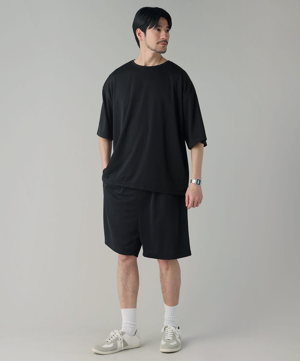 【セットアップ対応】日本製POLARTEC(R) POWER DRY(R)鹿の子ドローコードバルーン半袖クルーネックTシャツ