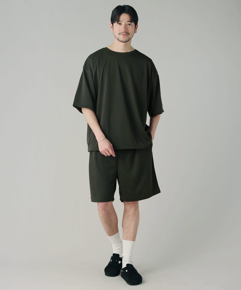 【セットアップ対応】日本製POLARTEC(R) POWER DRY(R)鹿の子 2タックドロストショーツ