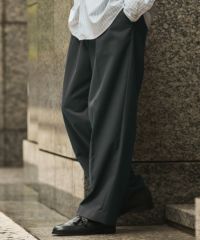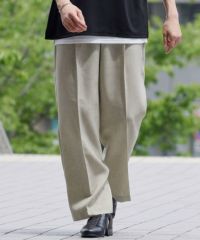 日本製Naturemier(R)(ナチュレミア)TECHメランジトロツイル 2タック イージーワイドパンツ