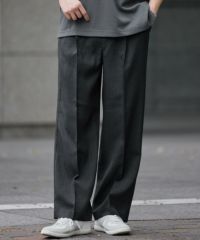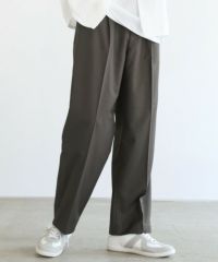 TR/綿麻ライクテックキャンバスリラクシングタックワイドスラックスパンツ