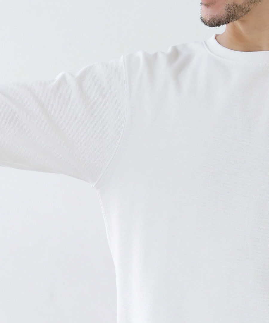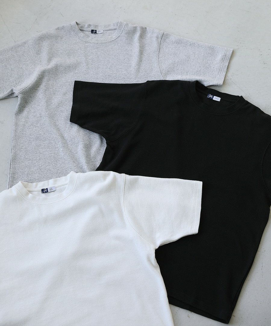 日本製「泉州」ハニカムサーマルニットガゼットクルーネック半袖スウェットライクTシャツ