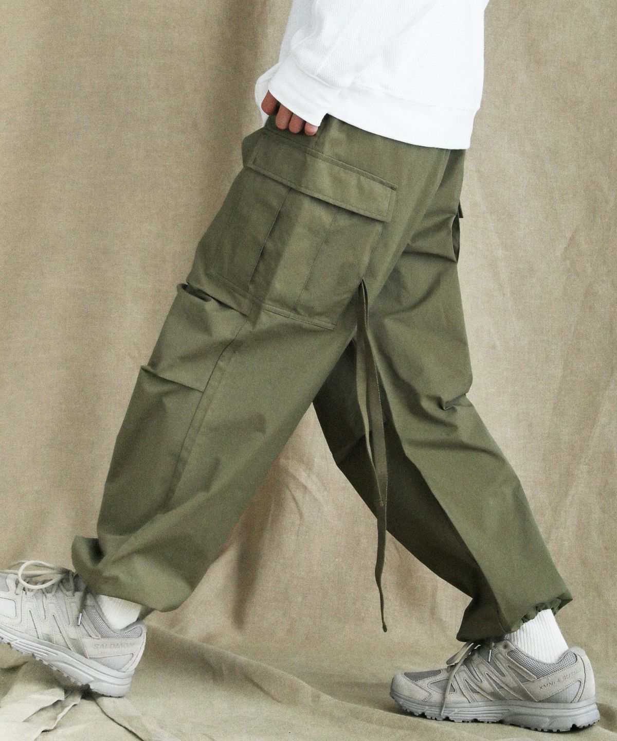 コットンナイロンギャバ US ARMY ファティーグワイドイージーバルーンパンツ