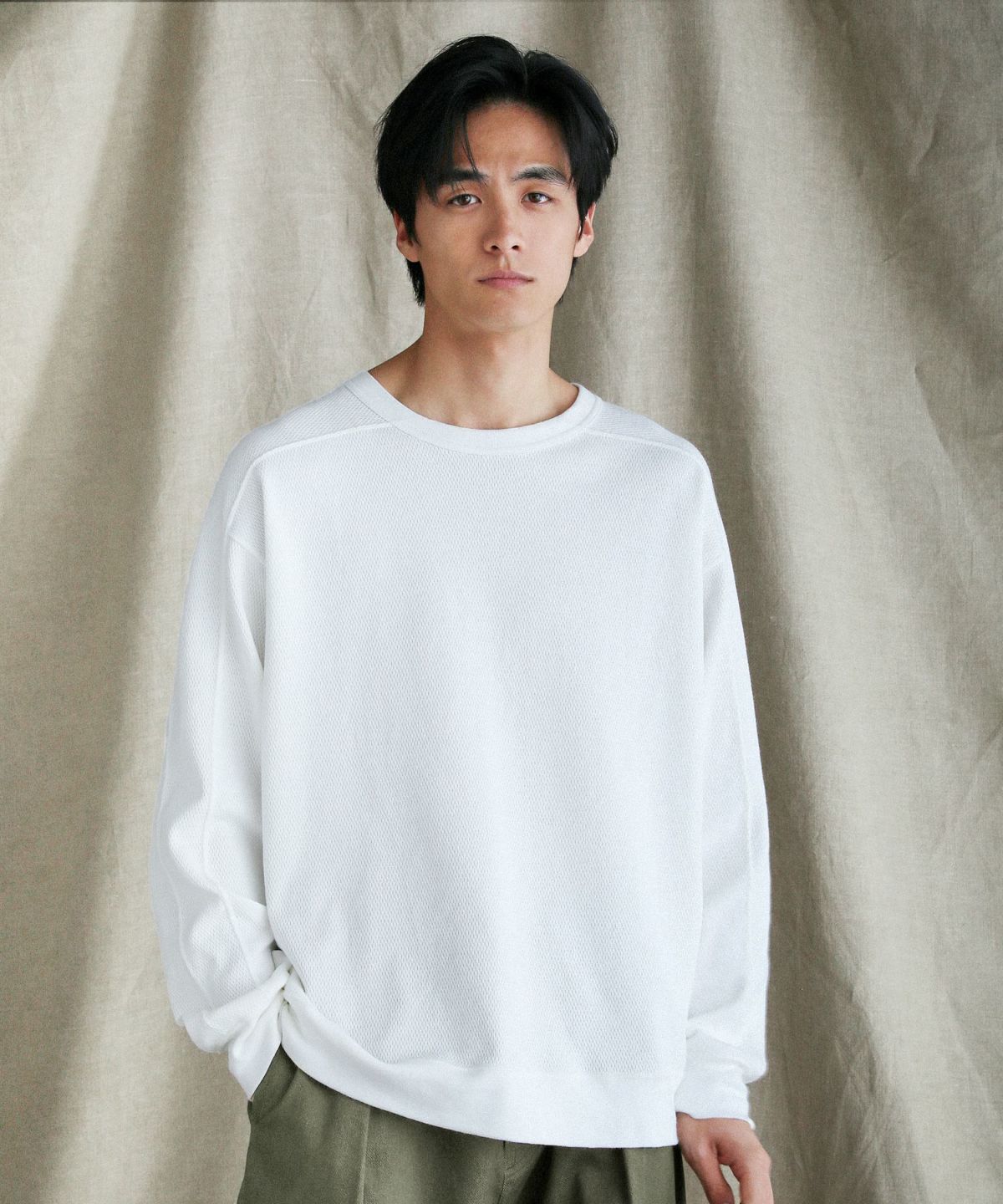リラックスフィット鹿の子編みクルーネックニット