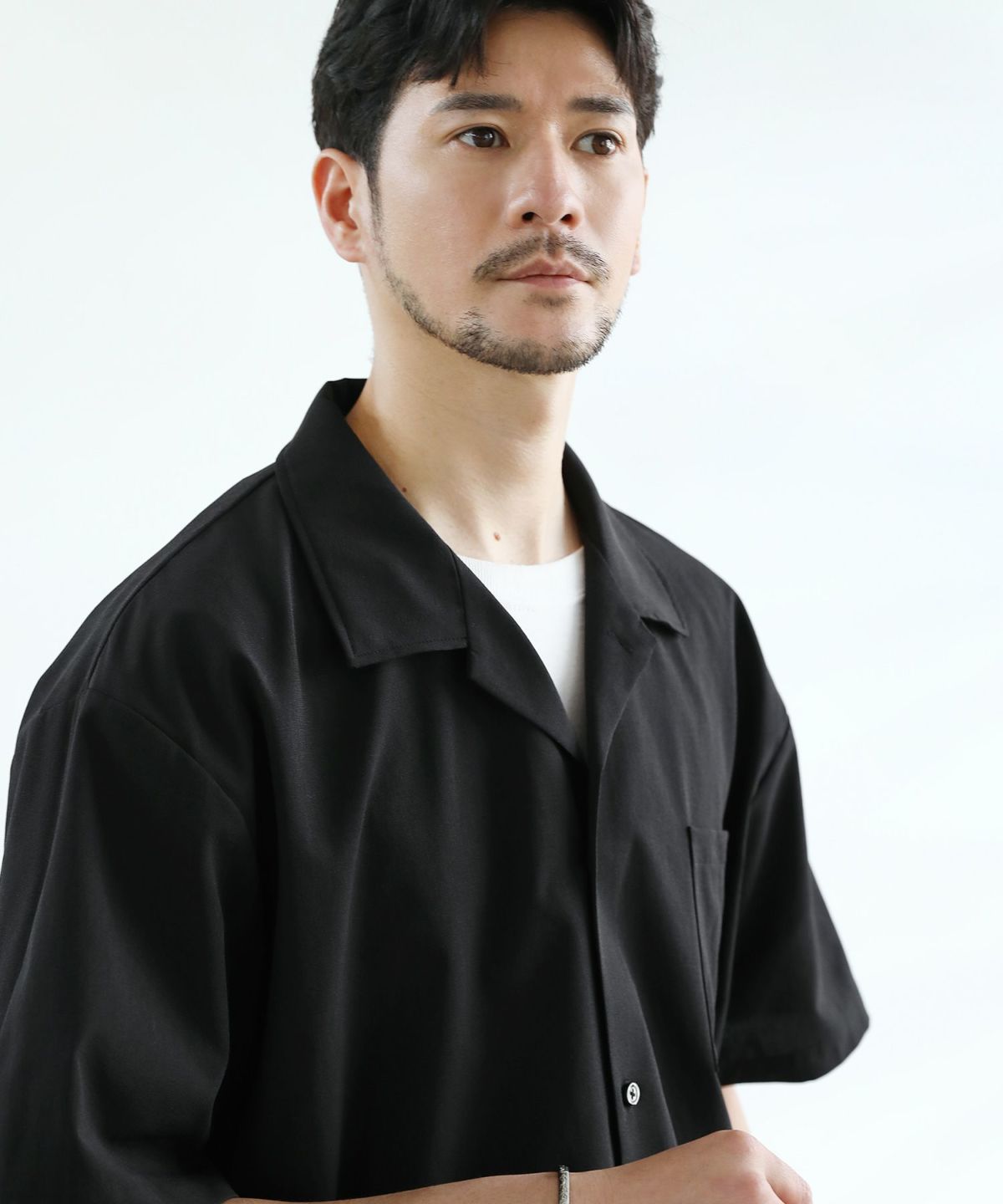 日本製レノクロス(からみ織)オープンカラー半袖シャツ