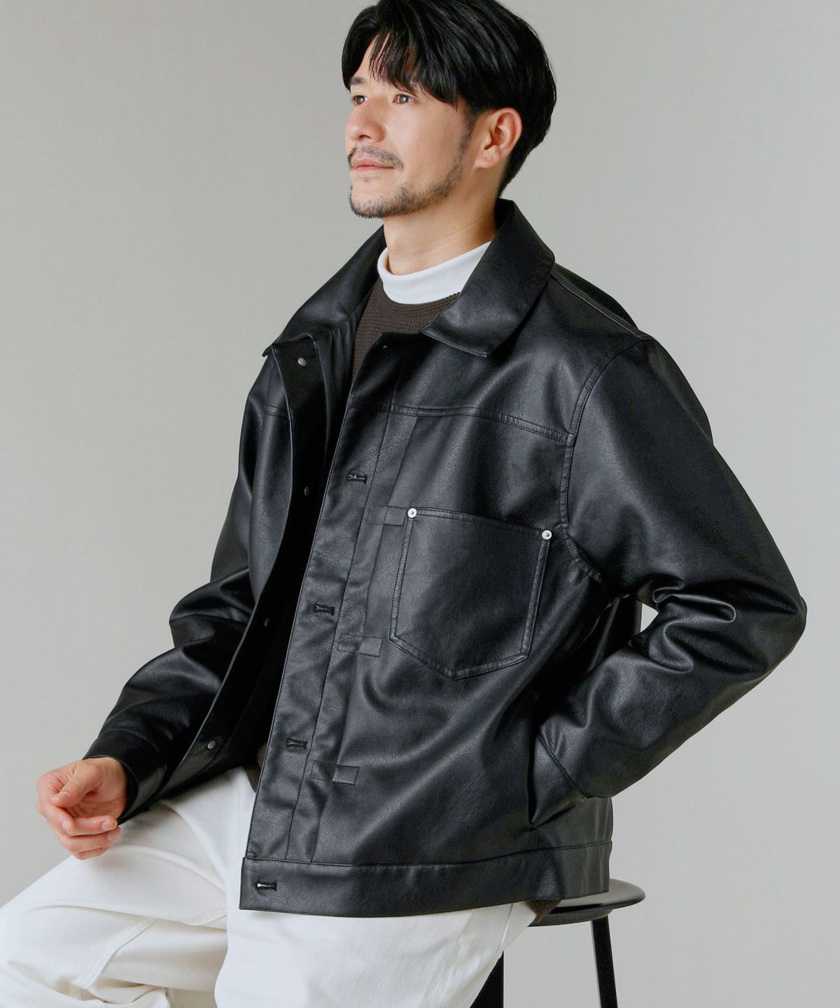 ヴィンテージ加工PUレザーA-2ショートブルゾン