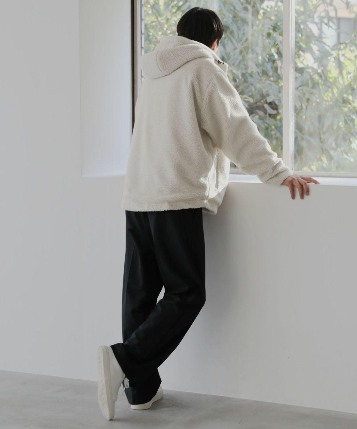 ウォッシャブルシープボアフリース裏地付きフードブルゾン