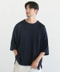 ウォッシャブル12G鹿の子編みクルーネックニット