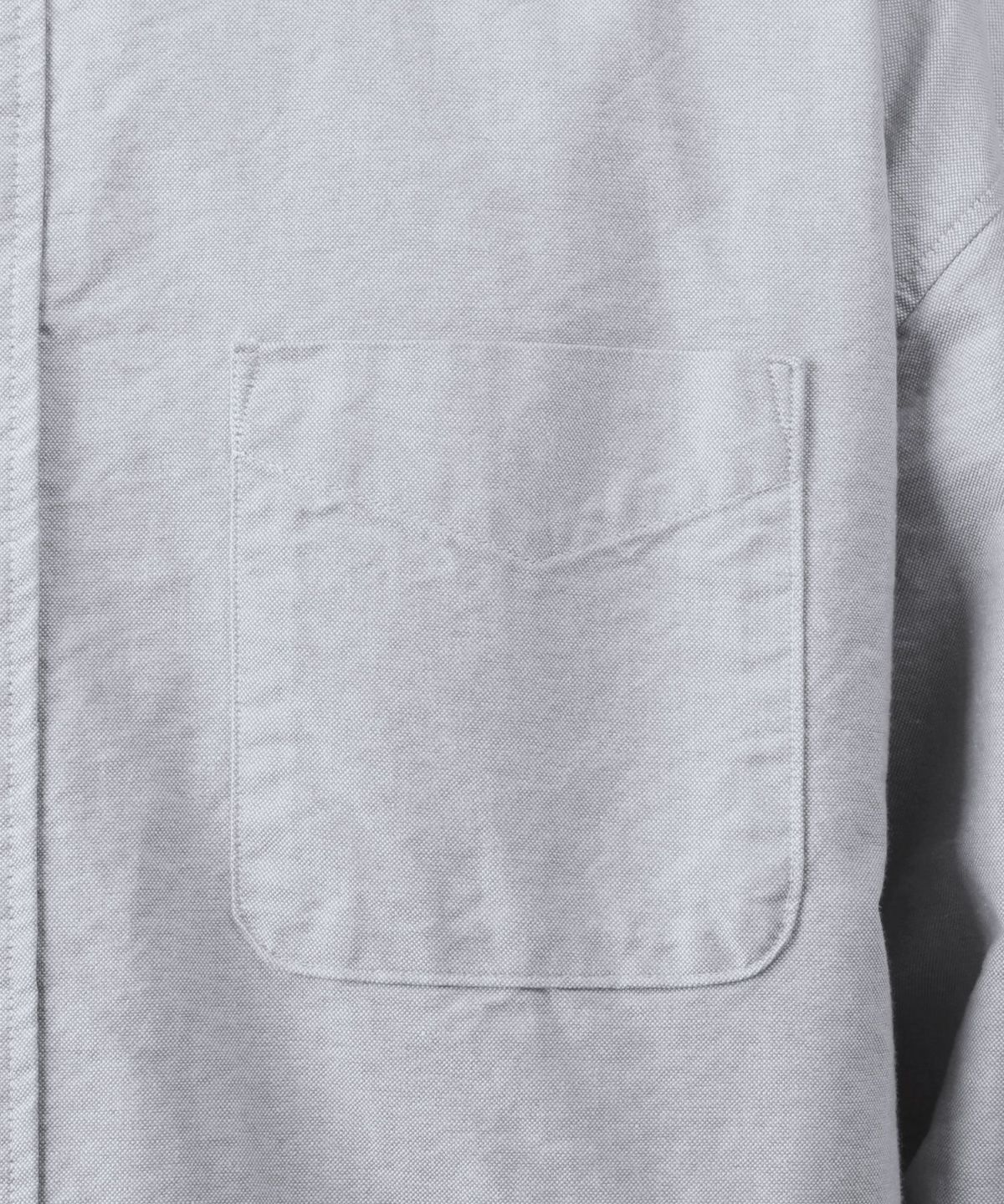 たて糸に色糸、よこ糸に白糸を使用し織ったオックスフォードシャンブレーは、白糸が混ざることで淡いパステルカラーに。暖かみのある自然な風合いが特長の、ベテラン職人の技術によってすべて日本で作られた一着です。