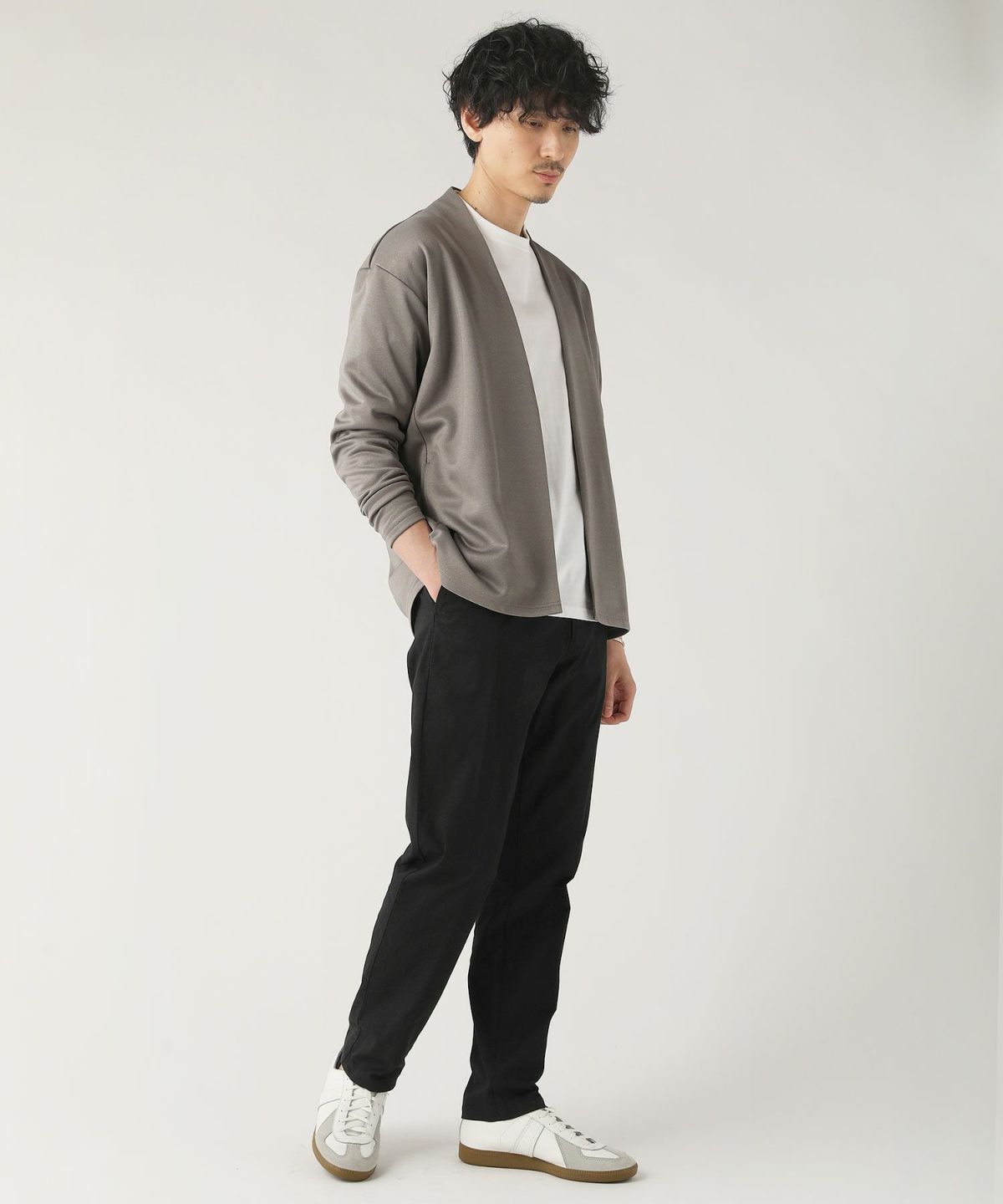 ピーチスキンポンチ/杢ポンチ ノーカラーカーディガン&テーパードパンツセットアップ